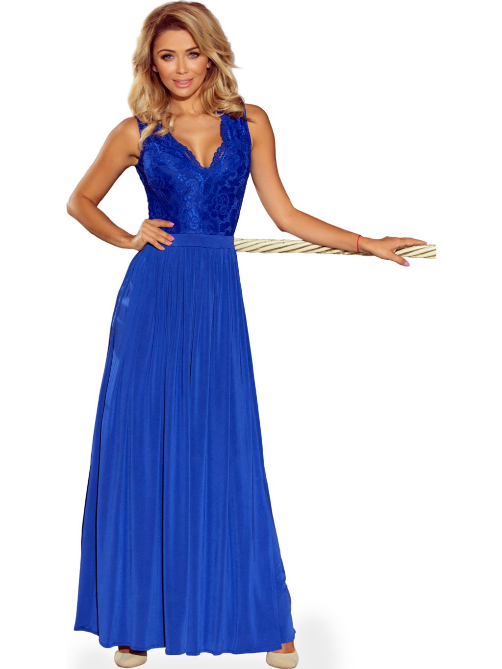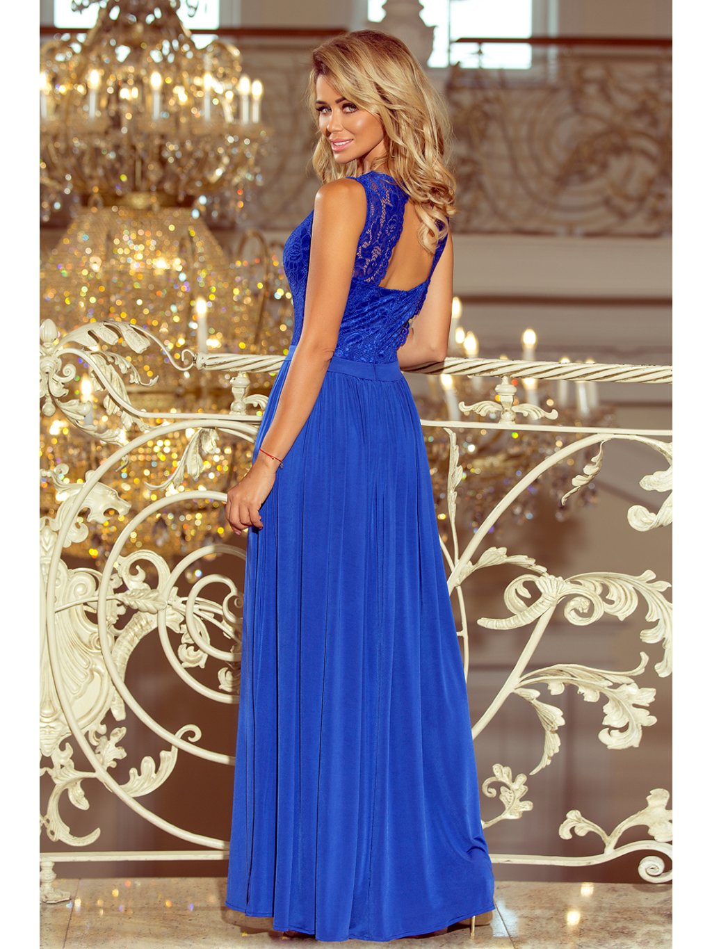 Tmavě modré maxi šaty s krajkovým topem LEA
