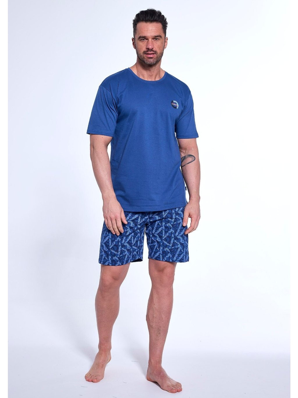 Modré pánské bavlněné pyžamo se vzorovanými kraťasy Cornette (Velikost S, Barva modrá)