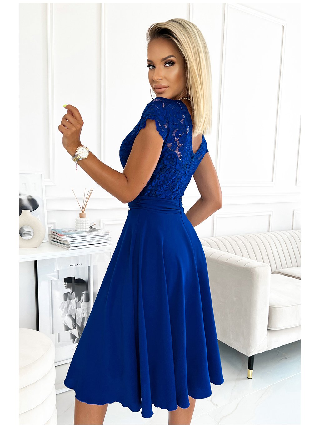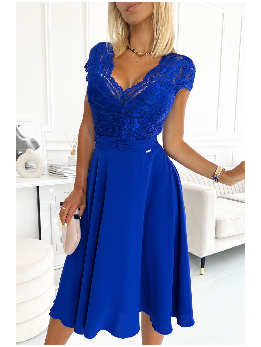 Modré šifónové šaty s krajkovým výstřihem ALEXIS