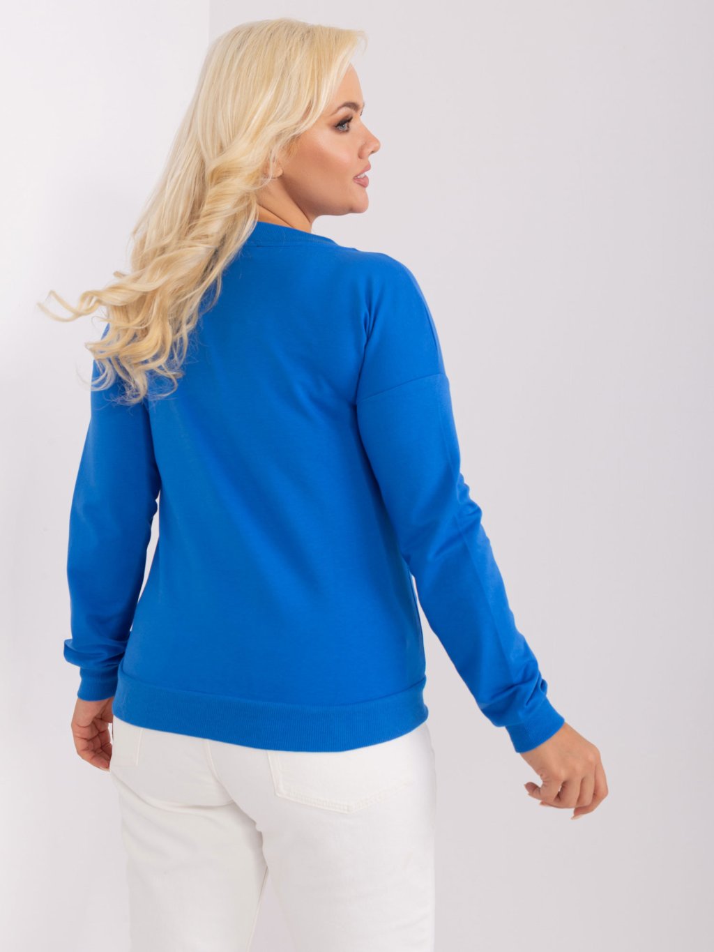 Modré triko s dlouhým rukávem a výstřihem do V