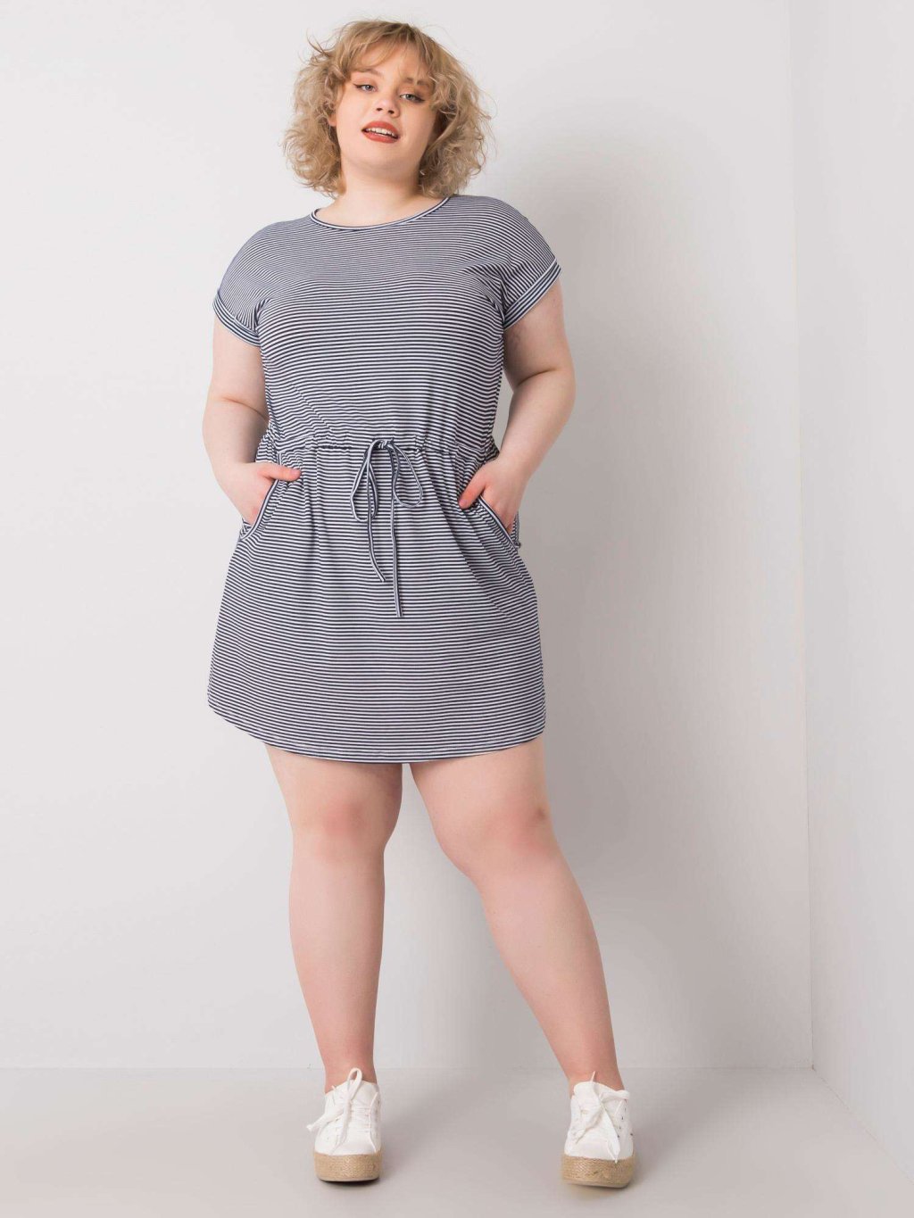 Modelka na obrázcích je vysoká 179 cm, obvod přes prsa má 116 cm, obvod pasu 98 cm a přes boky 119 cm.
