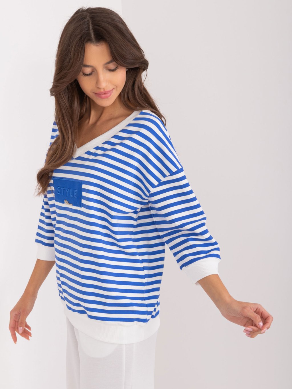 Modro-bílé pruhované triko s výstřihem a 3/4 rukávem