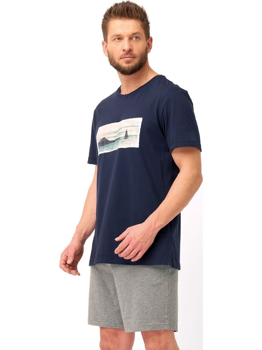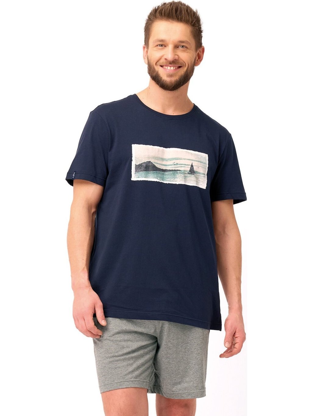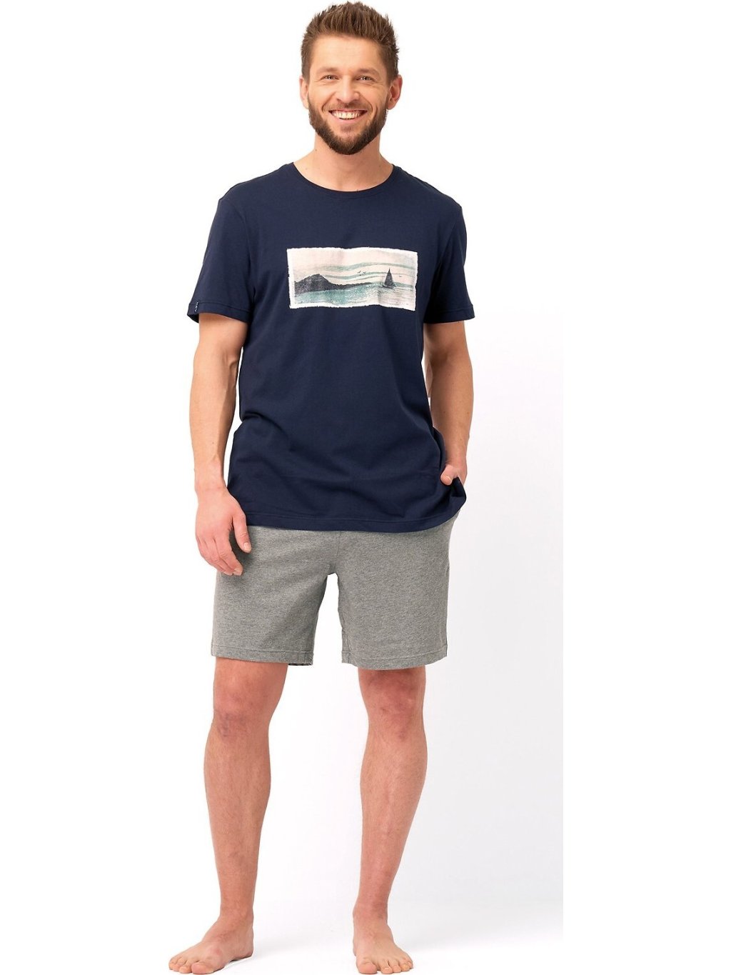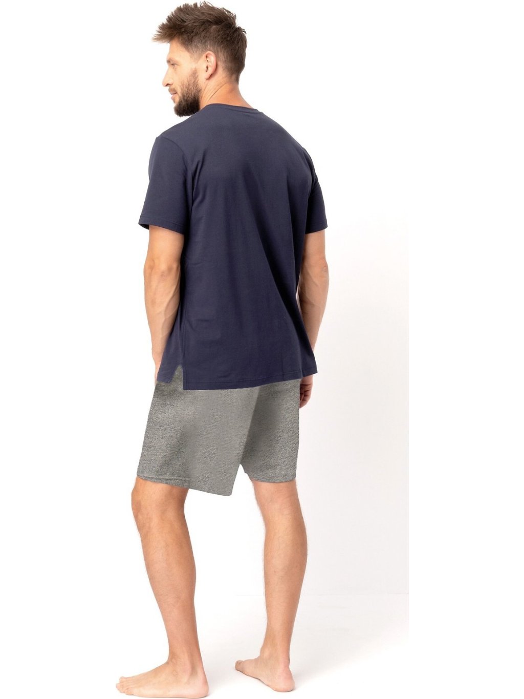 Modro-šedé pánské krátké pyžamo s potiskem Key