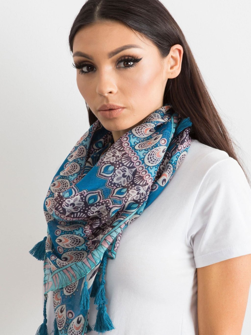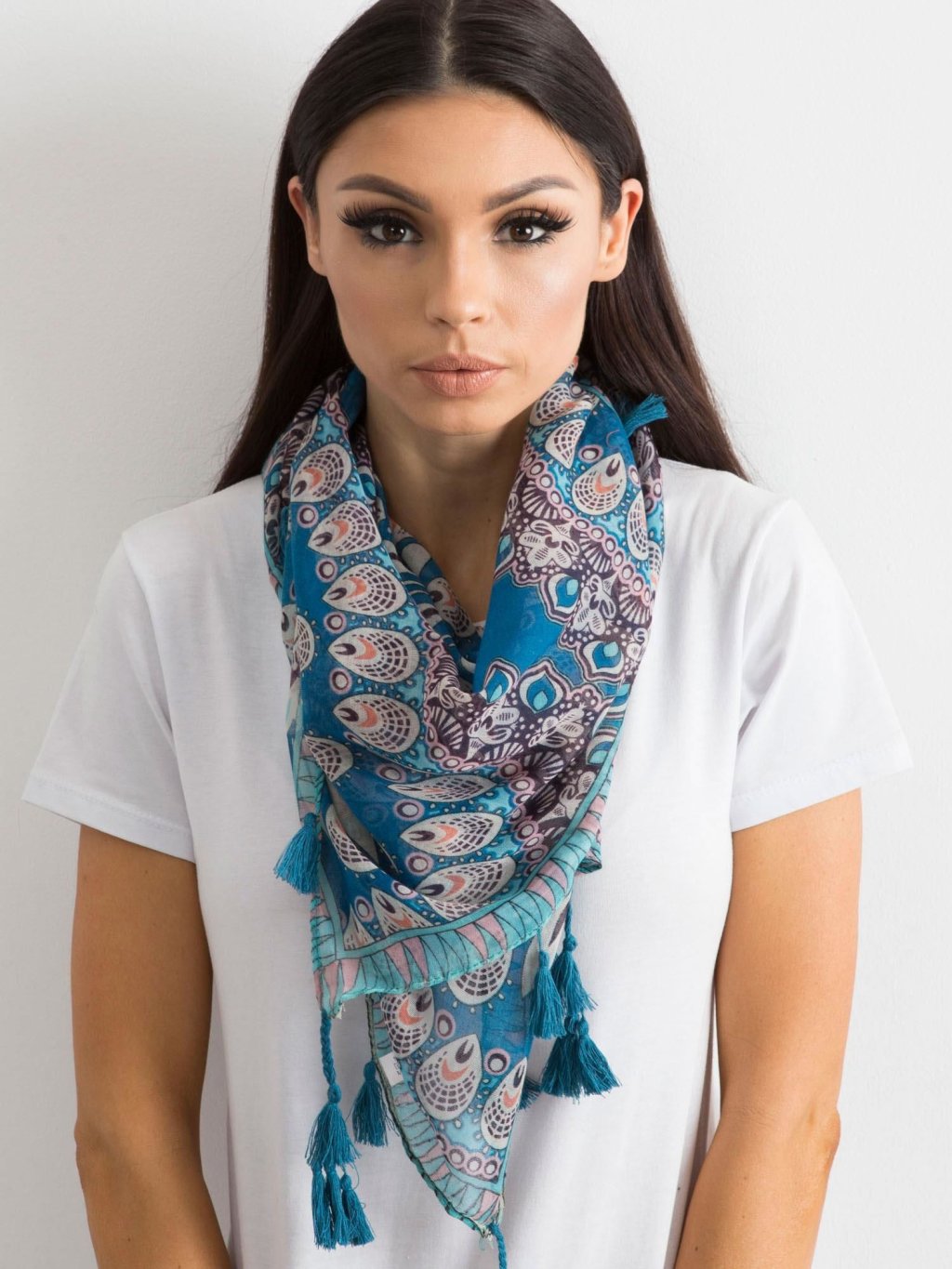 Modrý dámský šátek s etnickými vzory