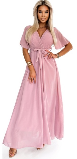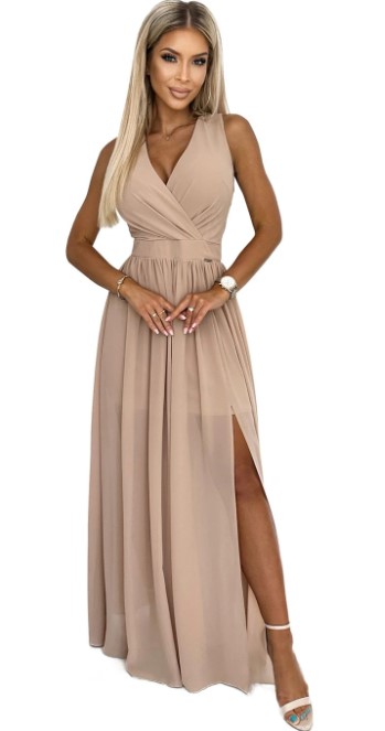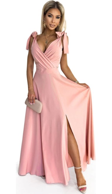 3. Šifonové detaily: Lehké šifonové materiály a transparentní detaily jsou ideální pro vytvoření éterického a romantického vzhledu. Hlubší výstřihy jsou často řešeny pomocí průhledných látek, které dodávají šatům sofistikovanost a eleganci.