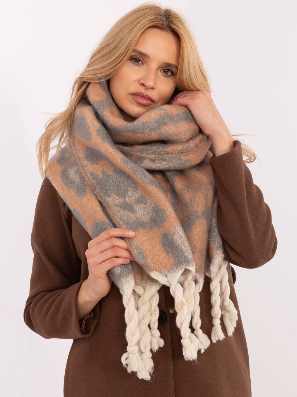 Oranžovo-šedý dámský šál se vzory