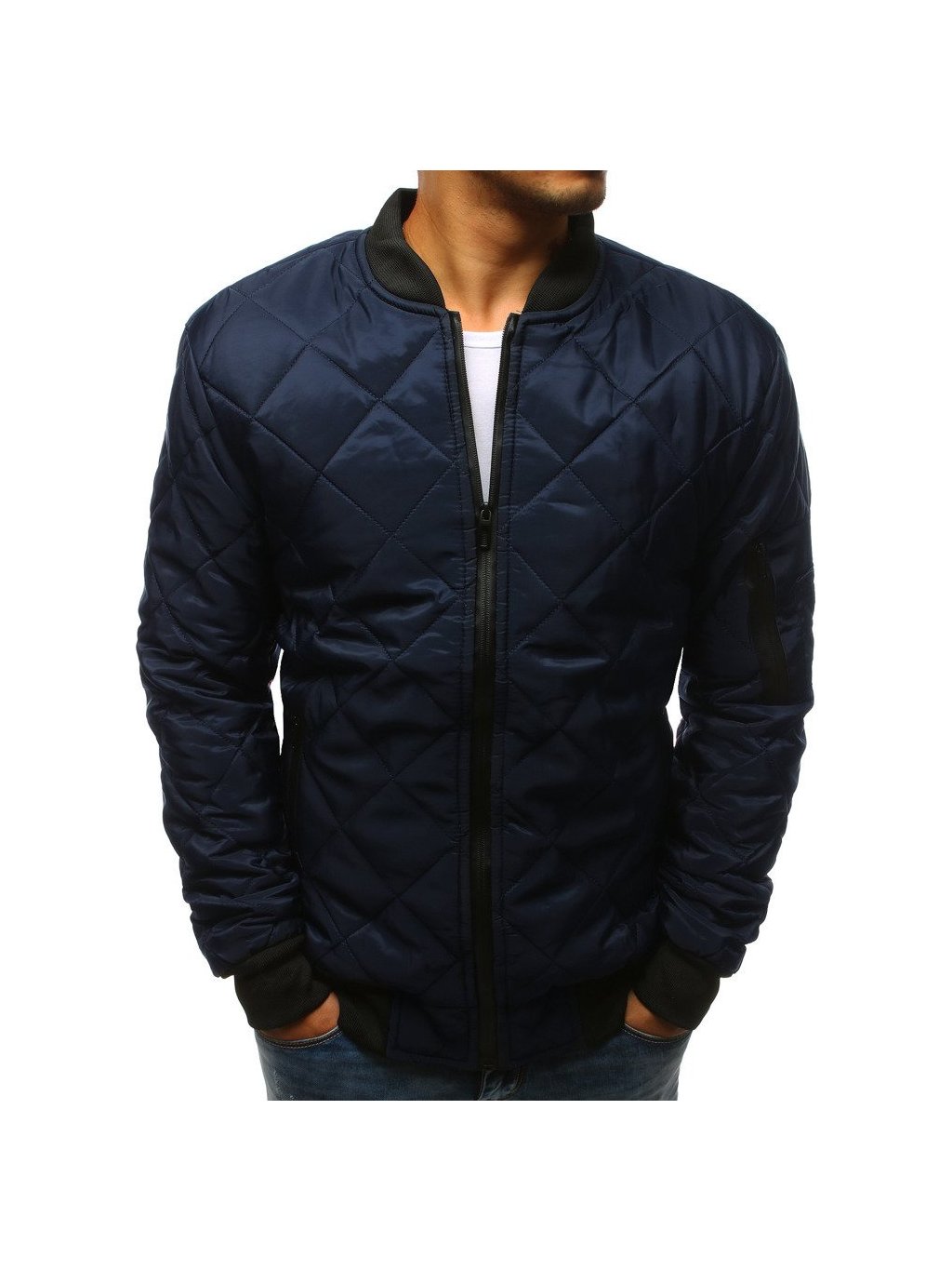Pánská prošívaná tmavě modrá bomber bunda