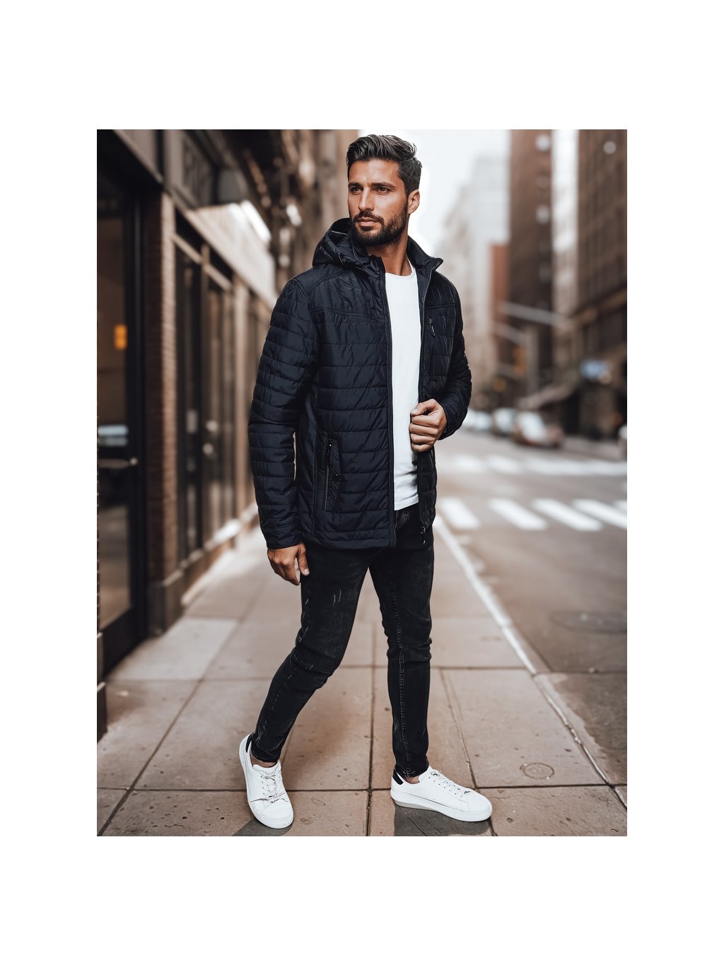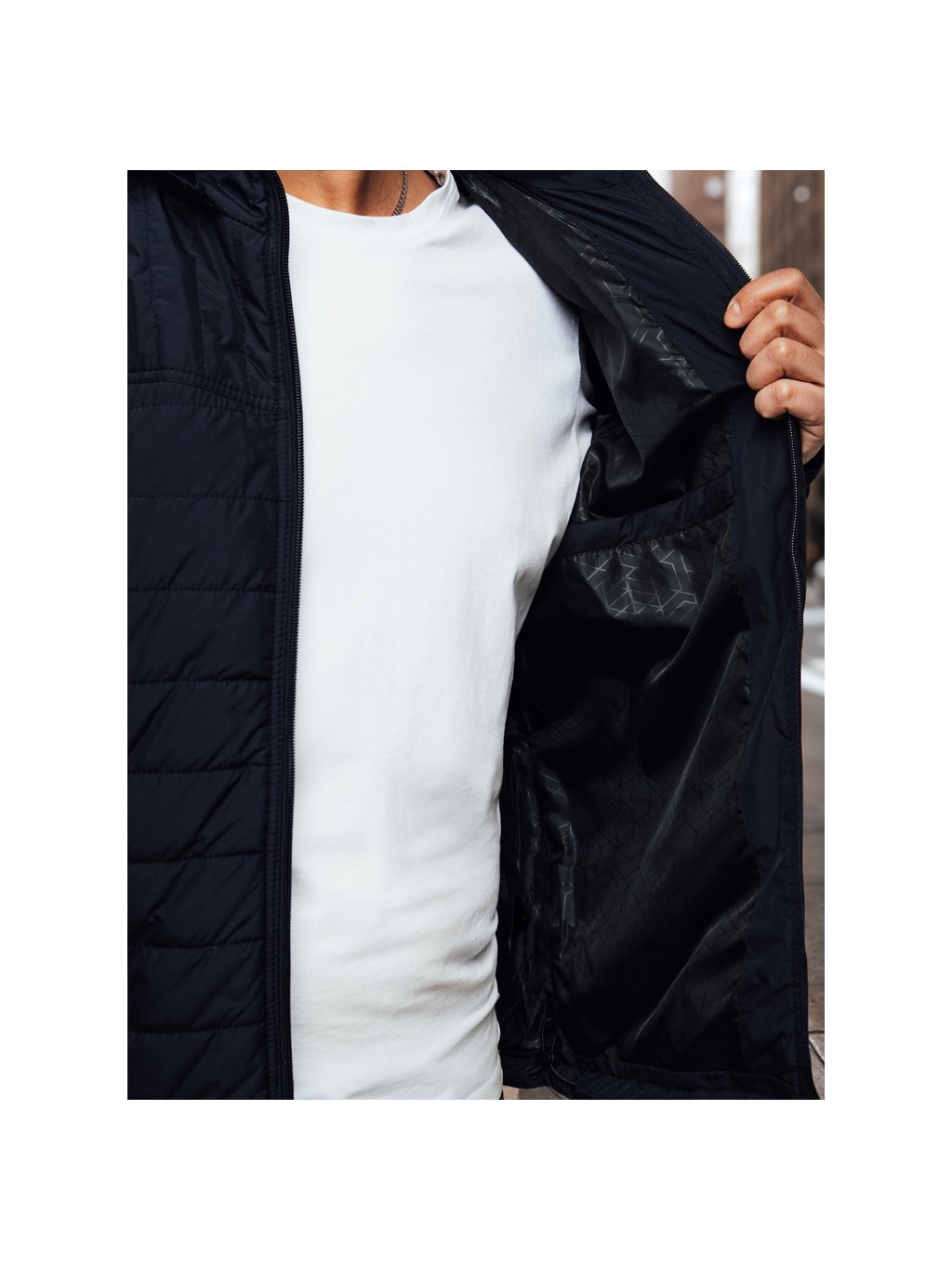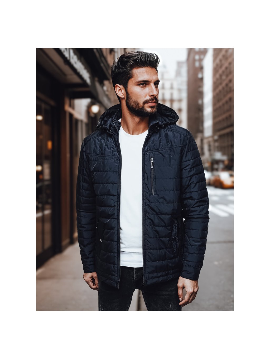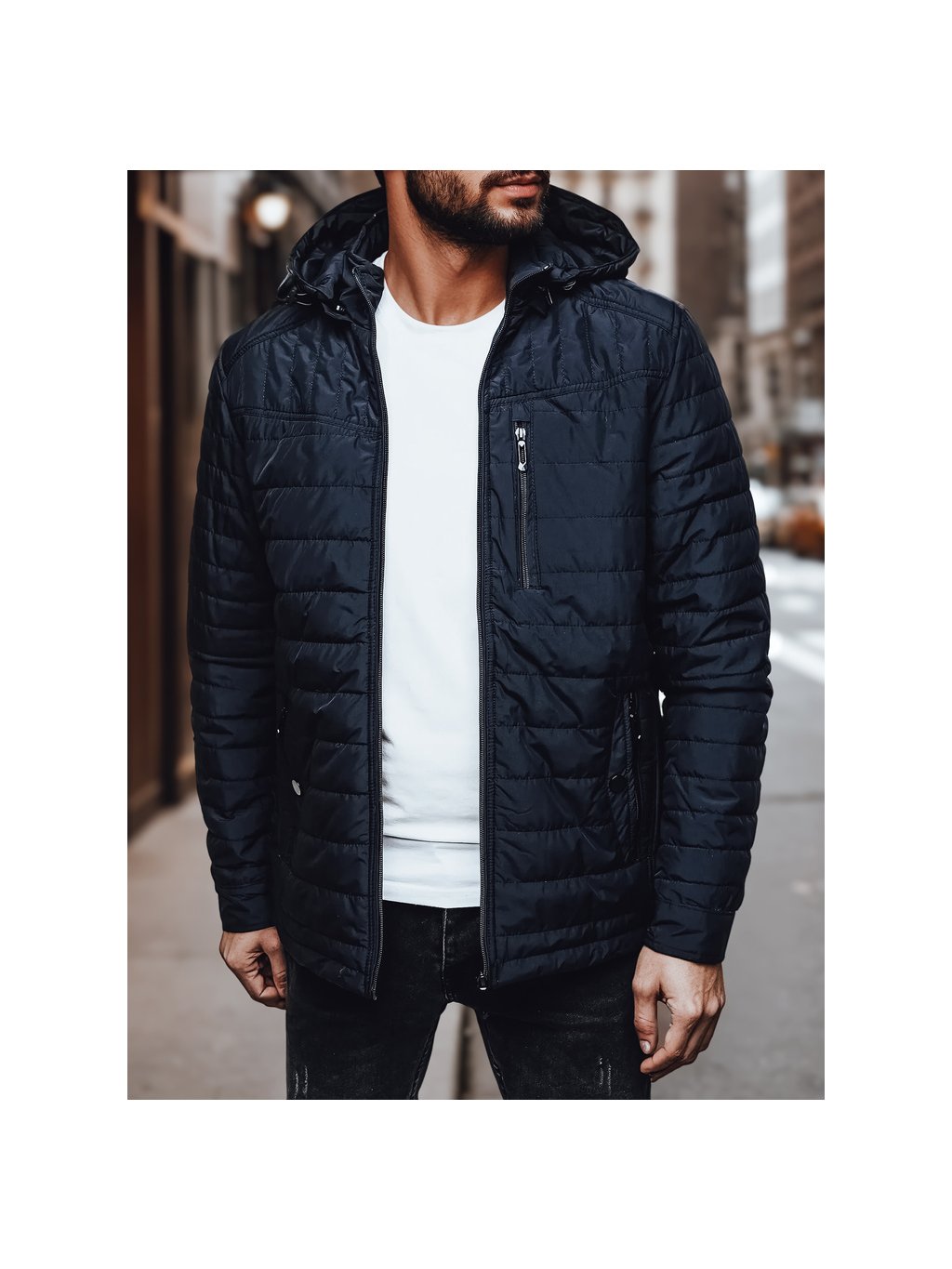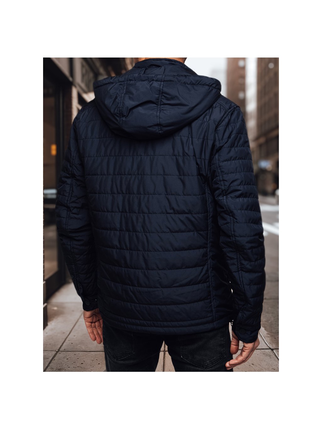 Pánská tmavě modrá prošívaná přechodová bunda s kapucí
