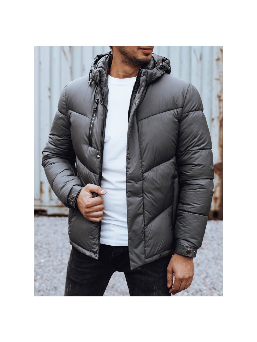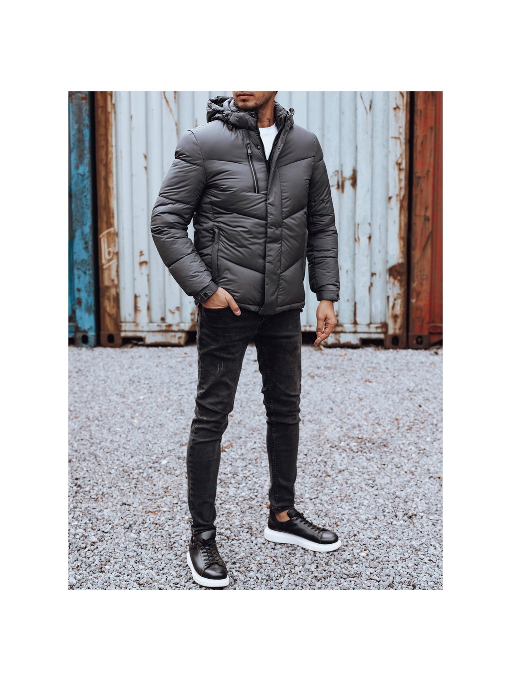 Pánská tmavě šedá zimní bunda s odepínací kapucí