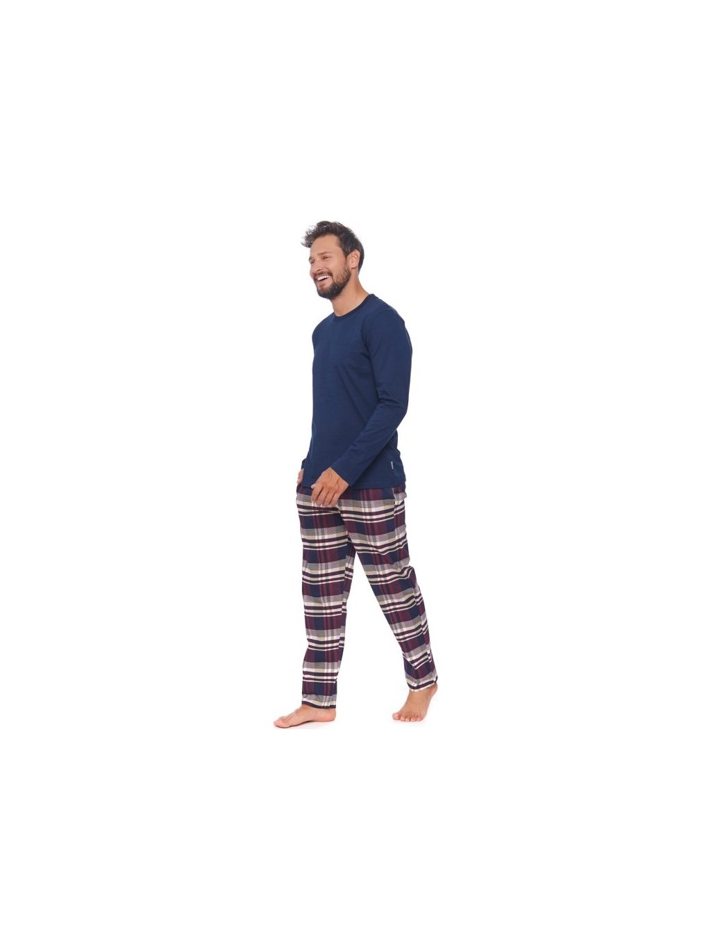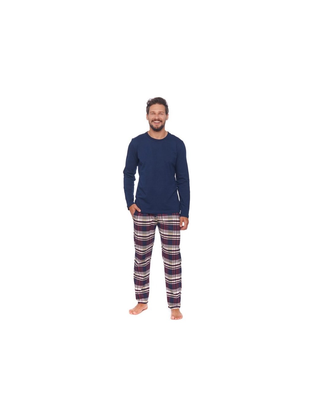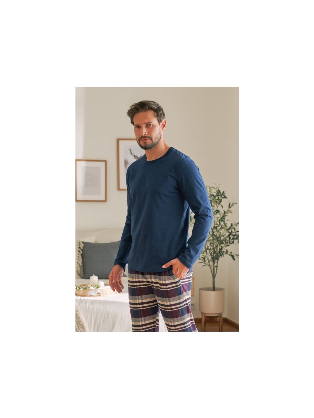 Pánské tmavě modré pyžamo s károvanými kalhotami