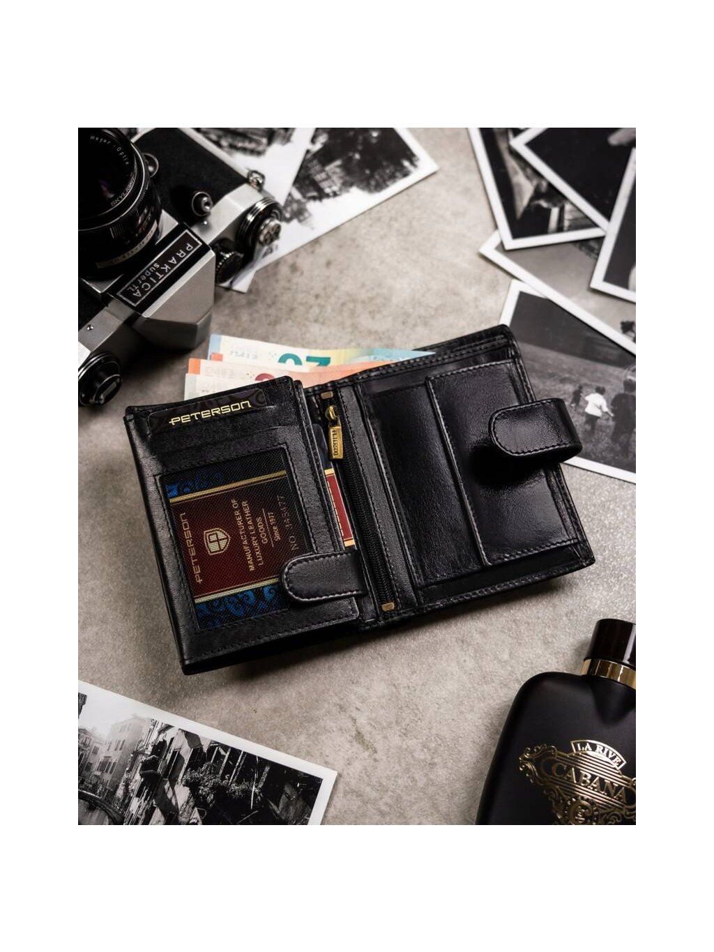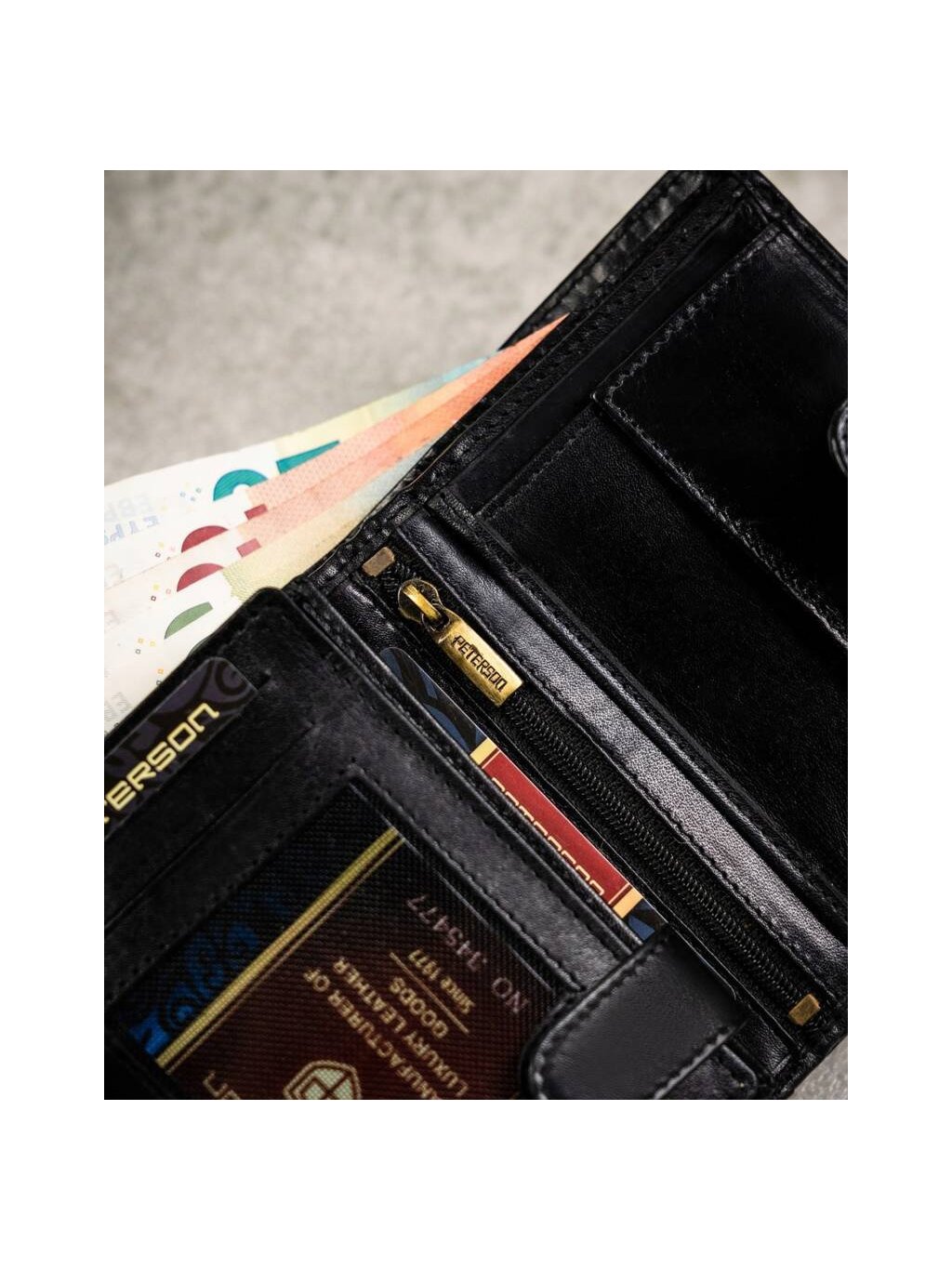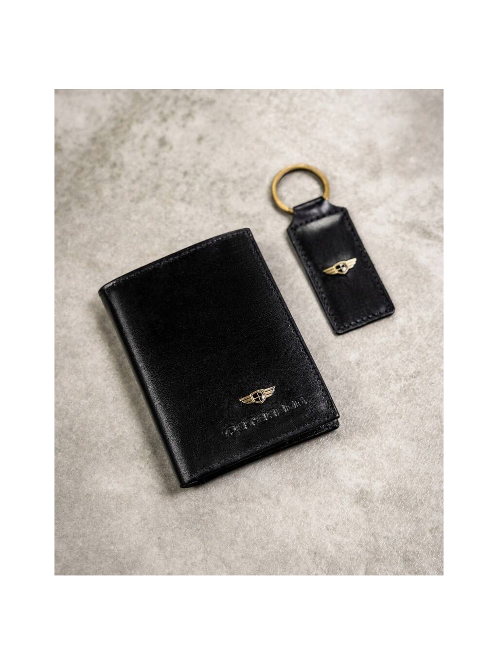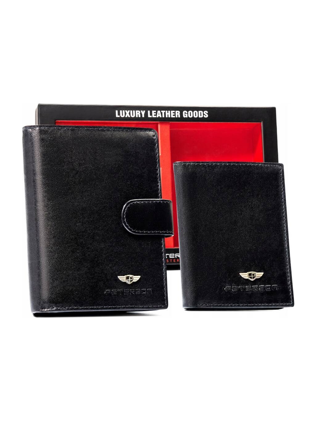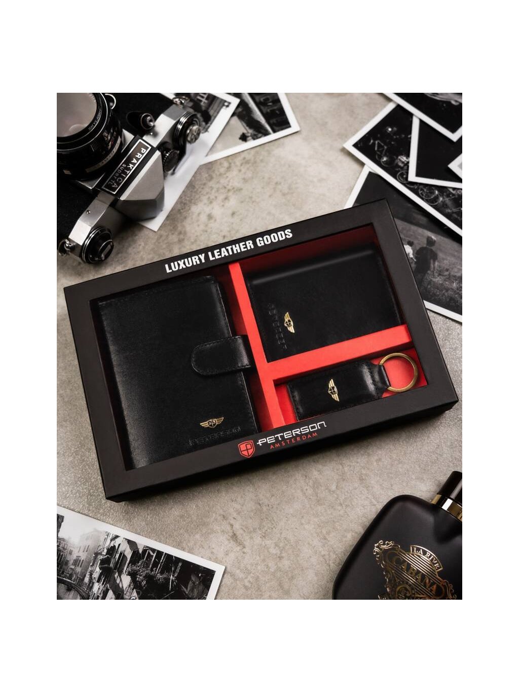 Peterson Dárková sada - černá kožená peněženka, pouzdro na karty a klíčenka I068