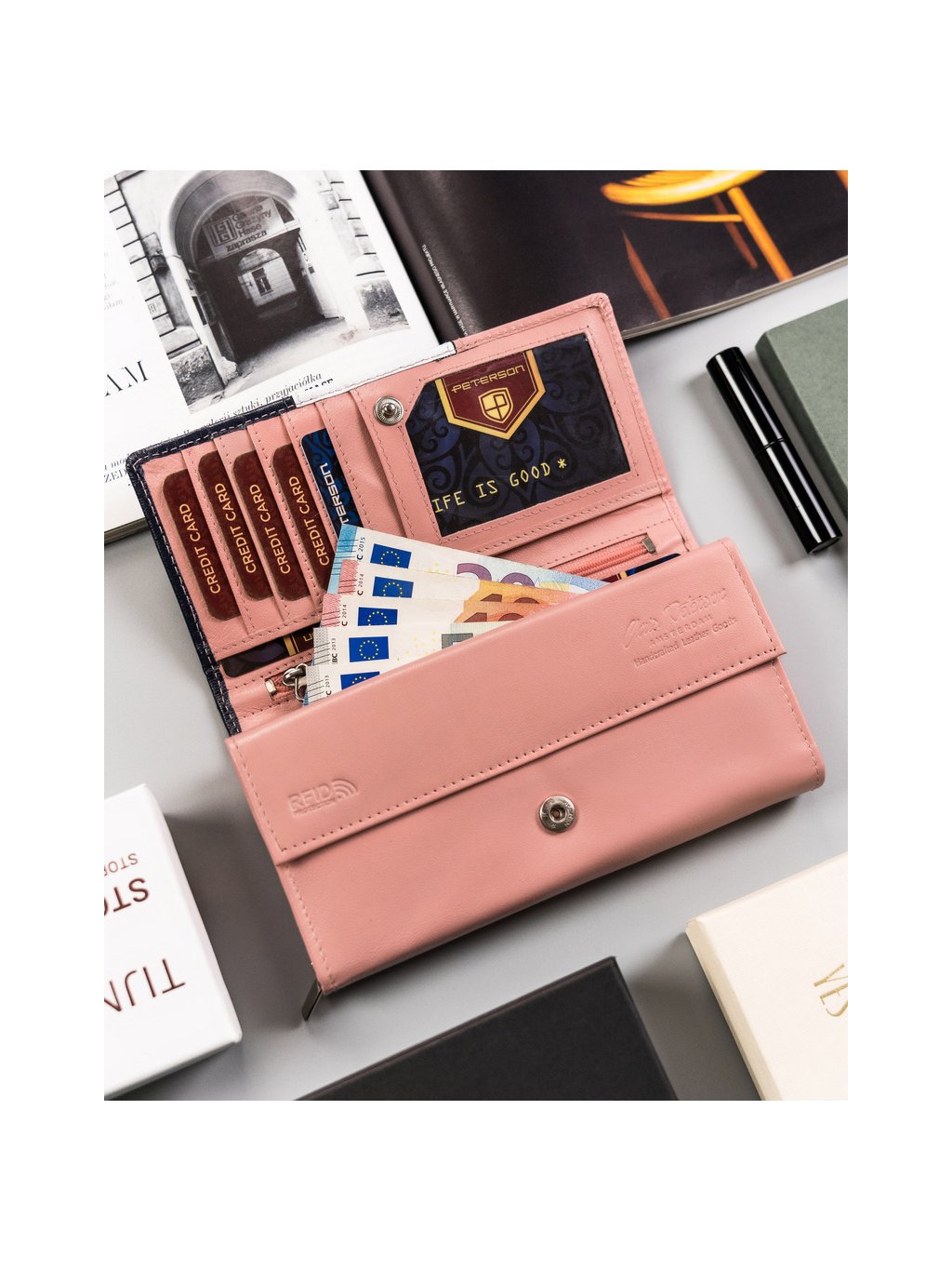 Peterson Velká bílo-růžovo-tmavě modrá peněženka Y327
