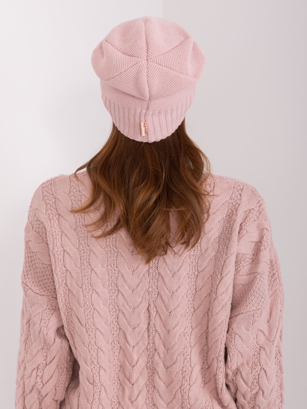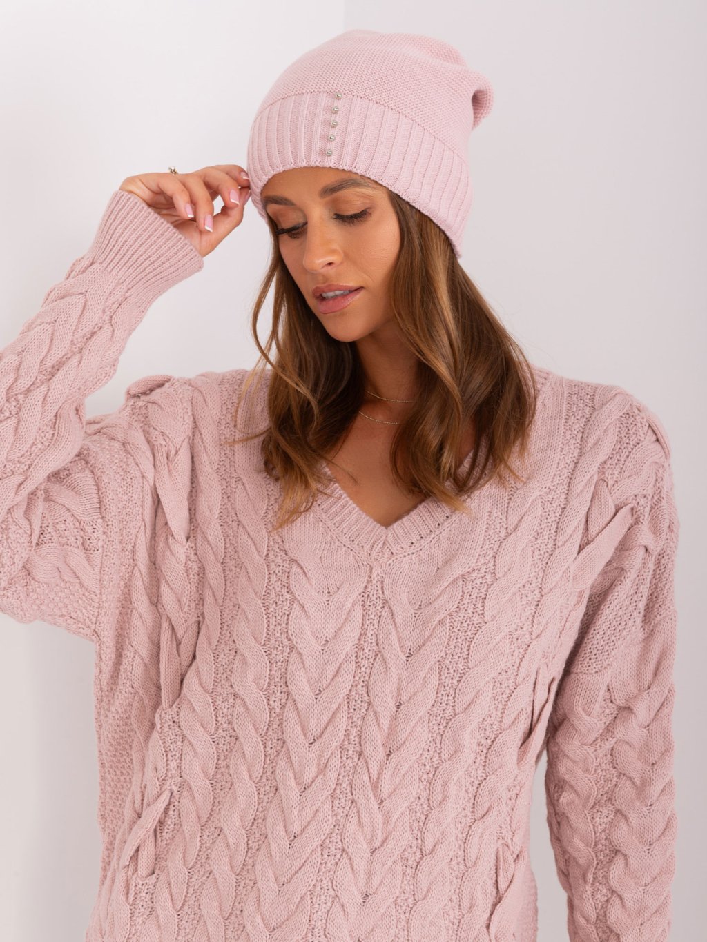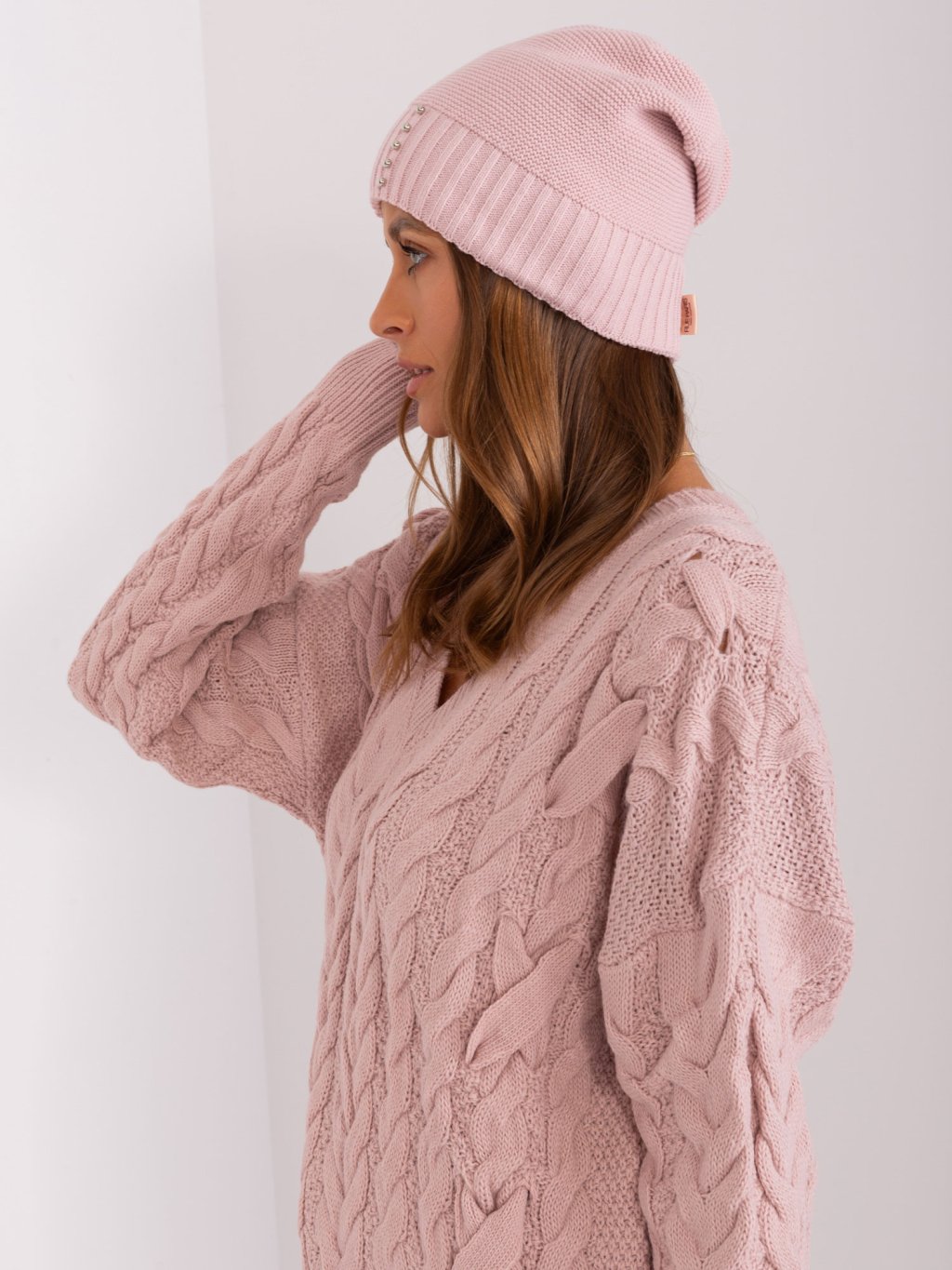Pudrová zimní čepice s korálky