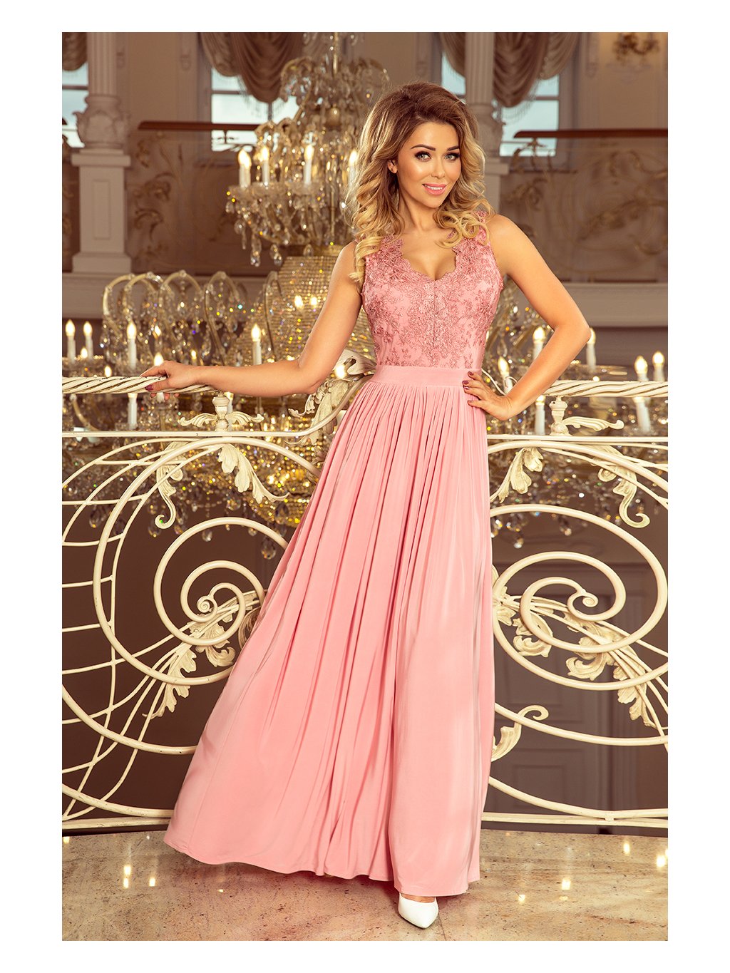 Pudrové dlouhé šaty bez rukávů VIVIANA