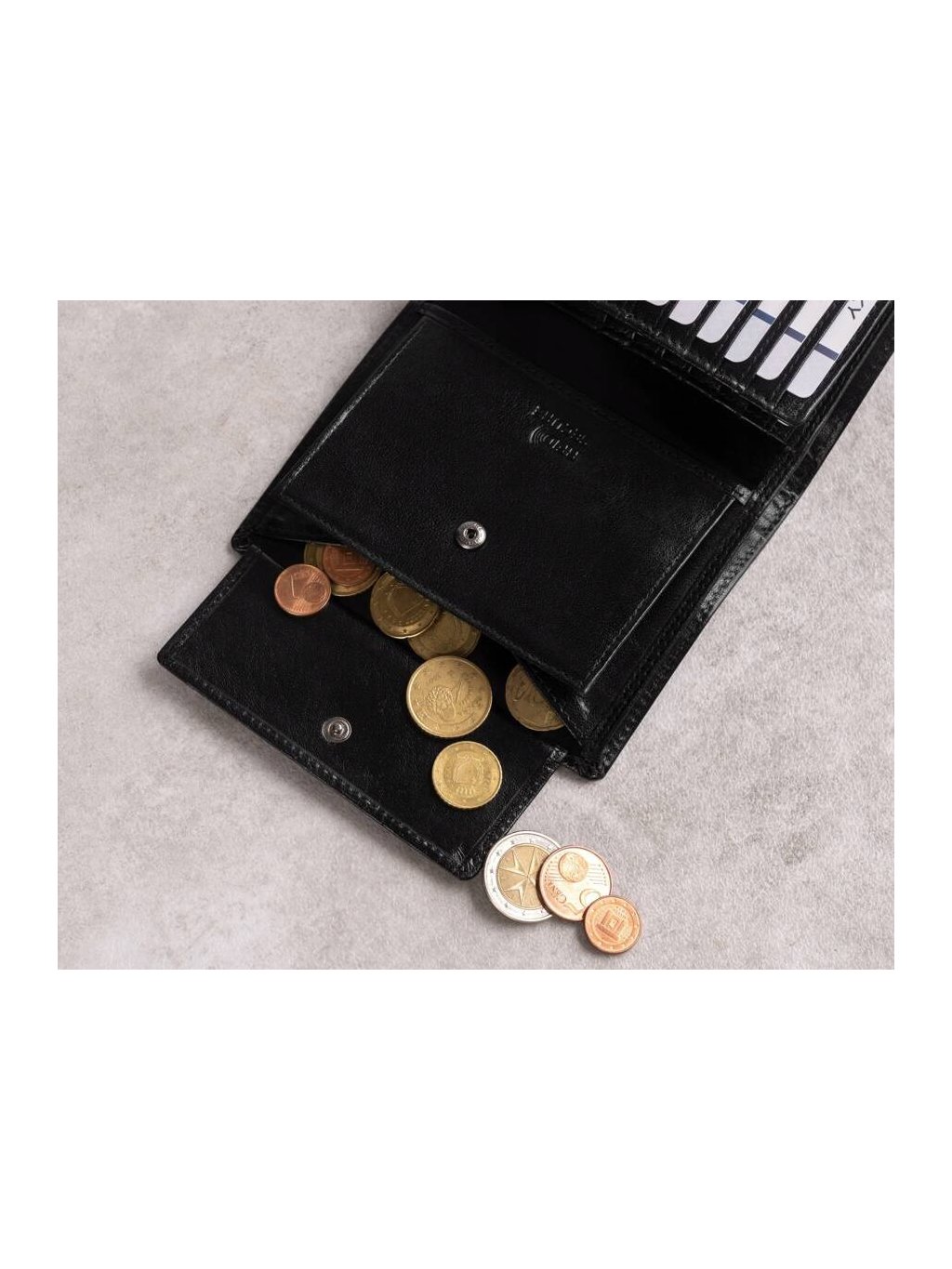• 2 široké kapsy na bankovky po celé délce peněženky