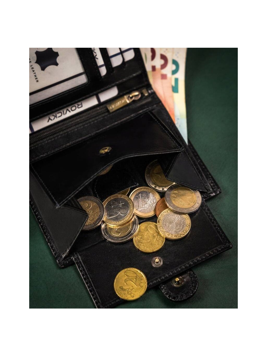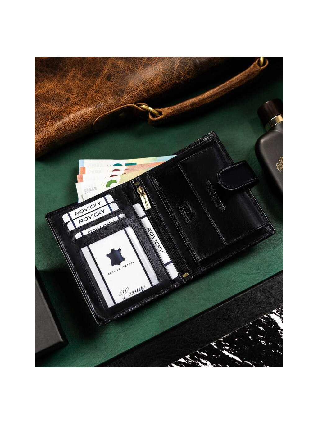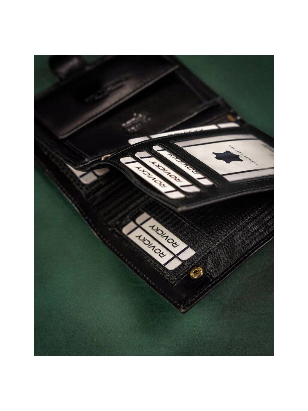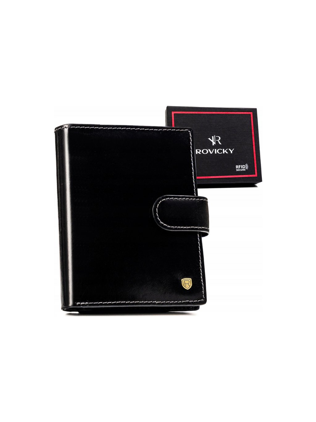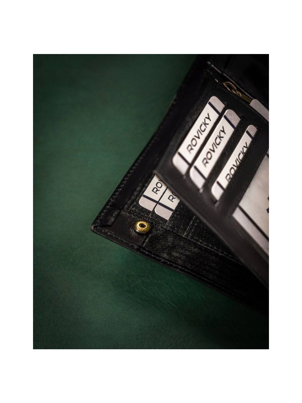 Rovicky Černá kožená peněženka na patentku s prošíváním L205