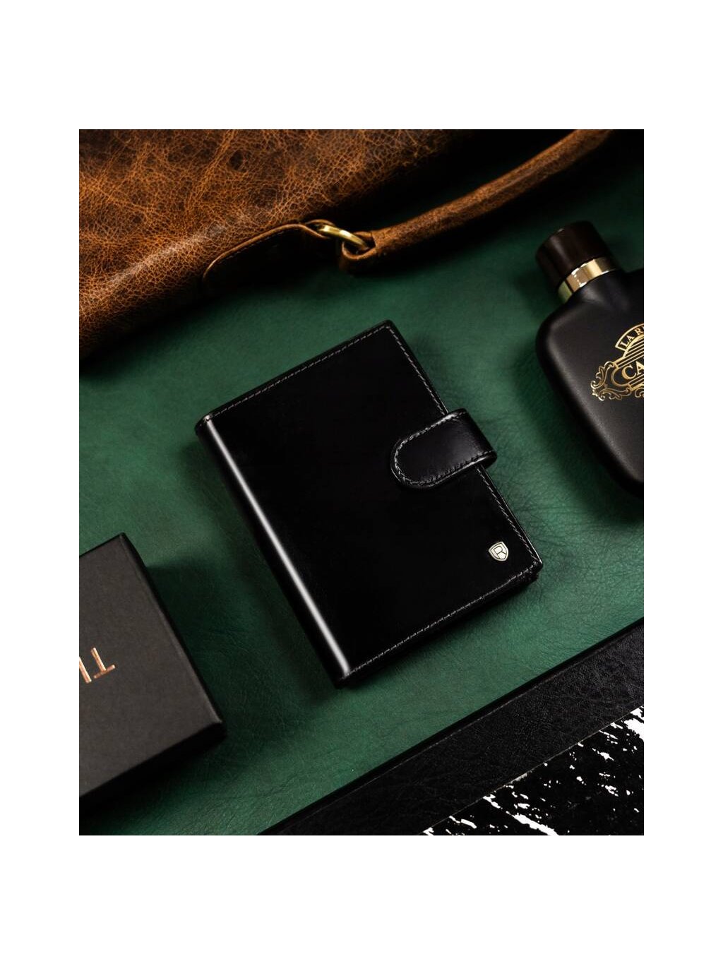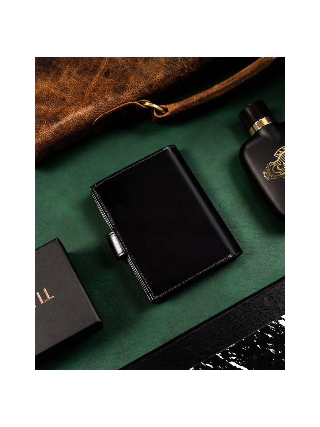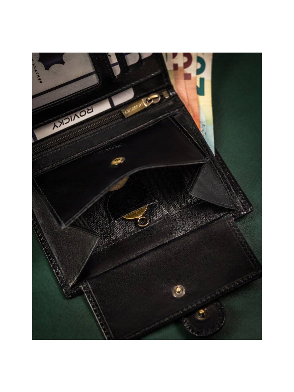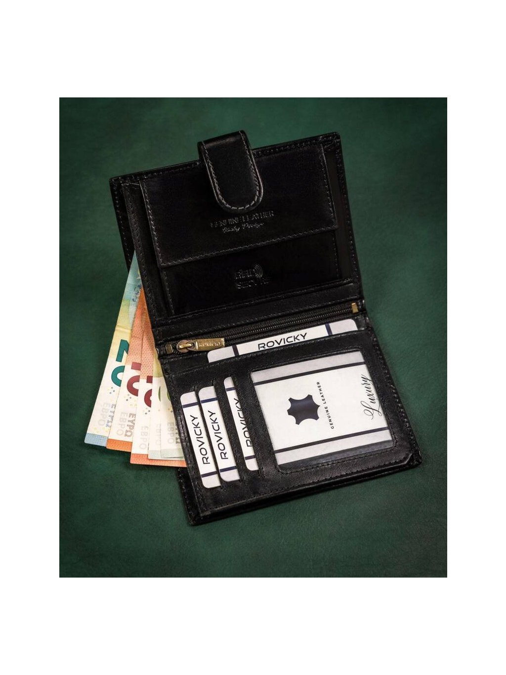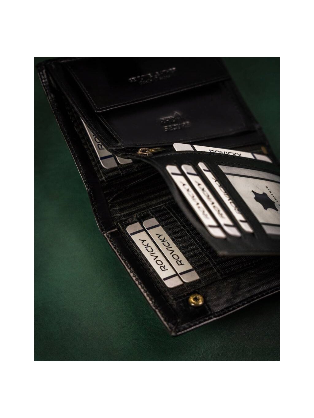Rovicky Černá kožená peněženka na patentku s prošíváním L205