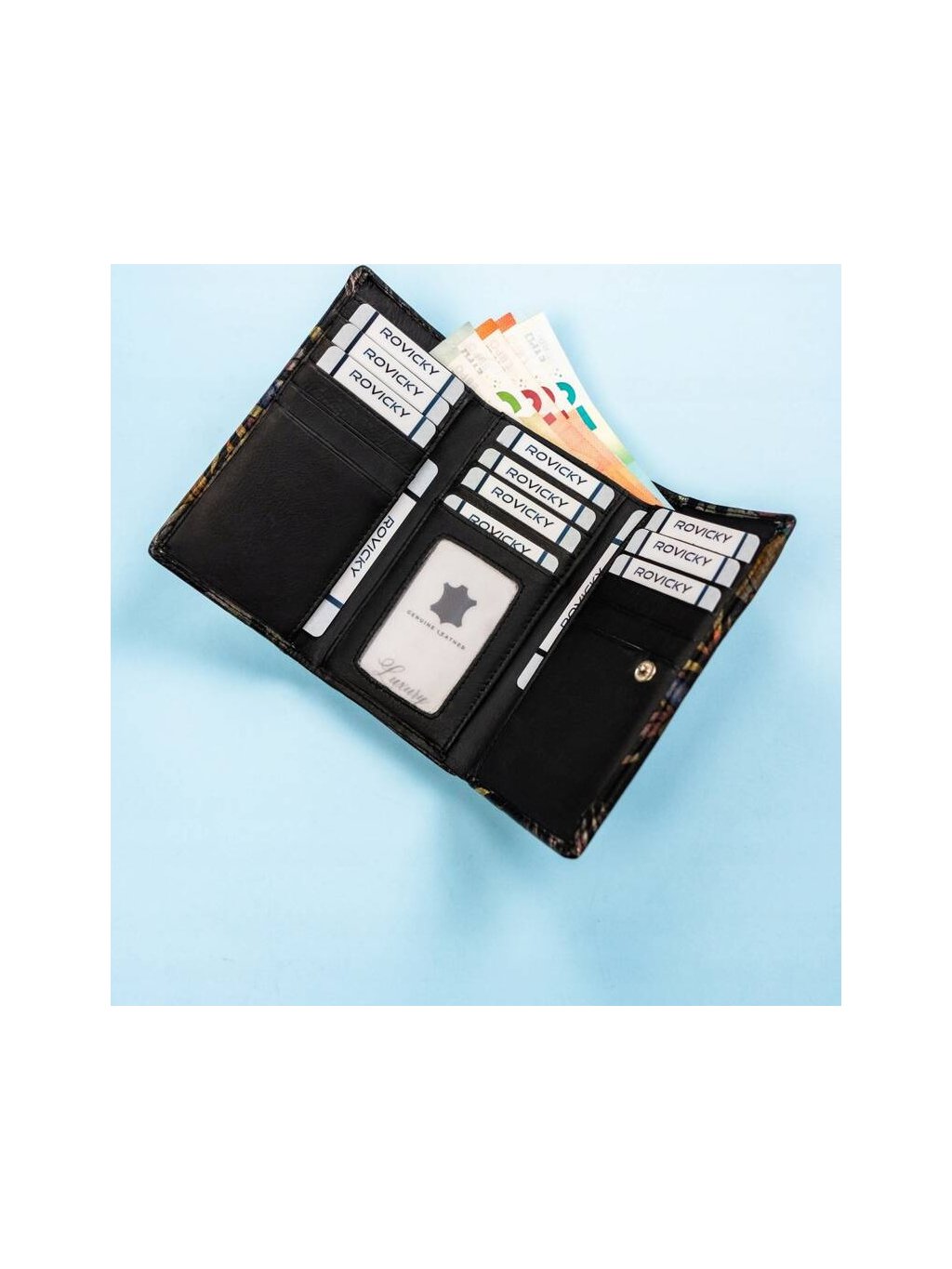 - 13 standardních přihrádek na platební karty, doklady a vizitky