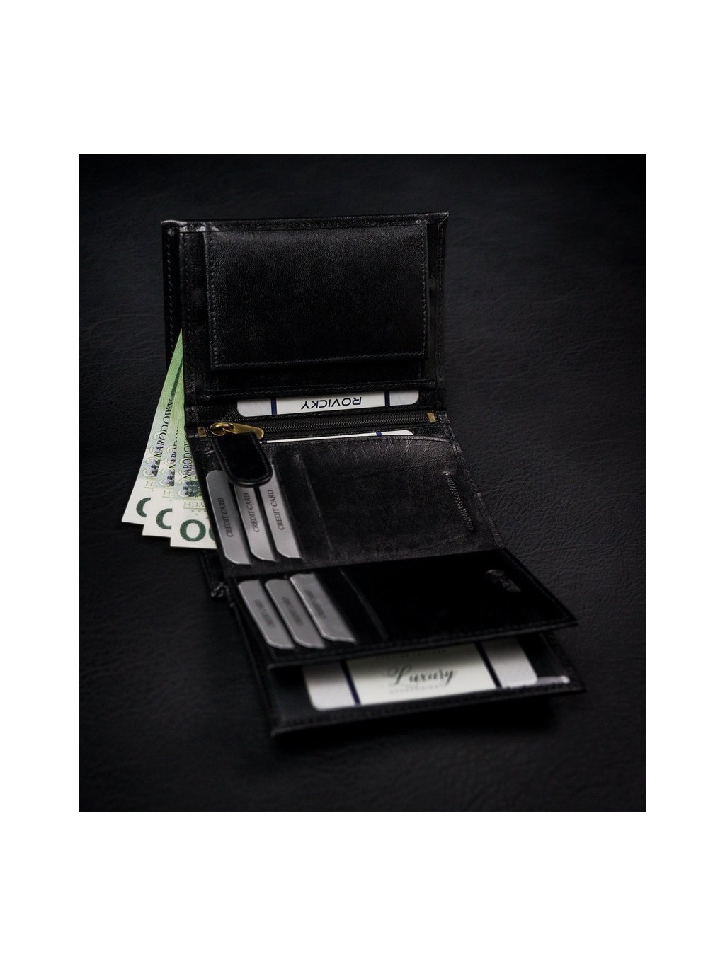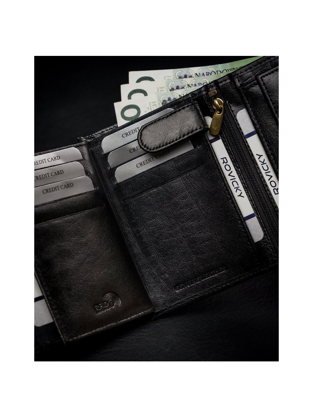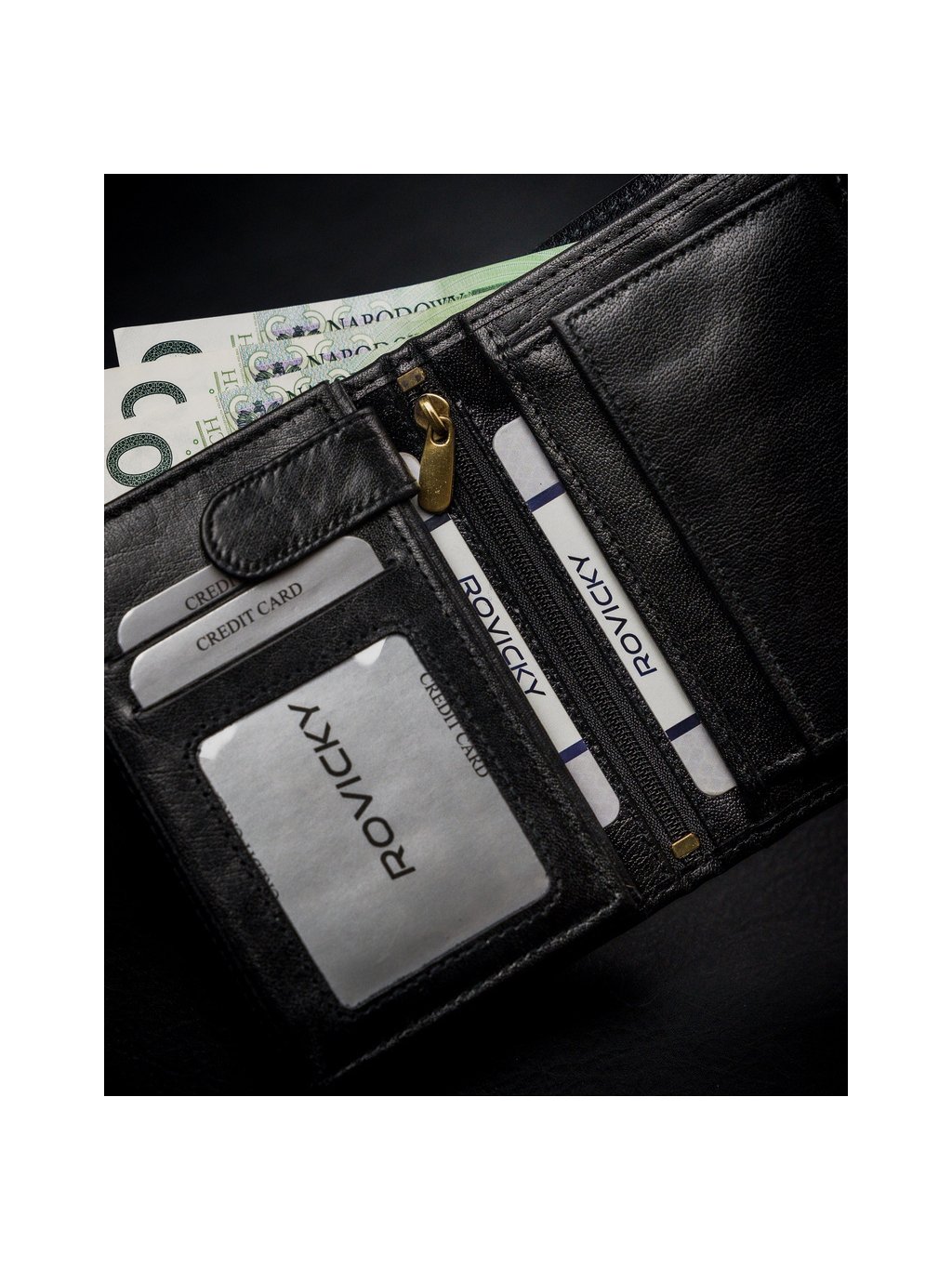 - uvnitř je kapsa na mince, 2 přihrádky na bankovky, 10 míst na karty, 4 místa na větší doklady