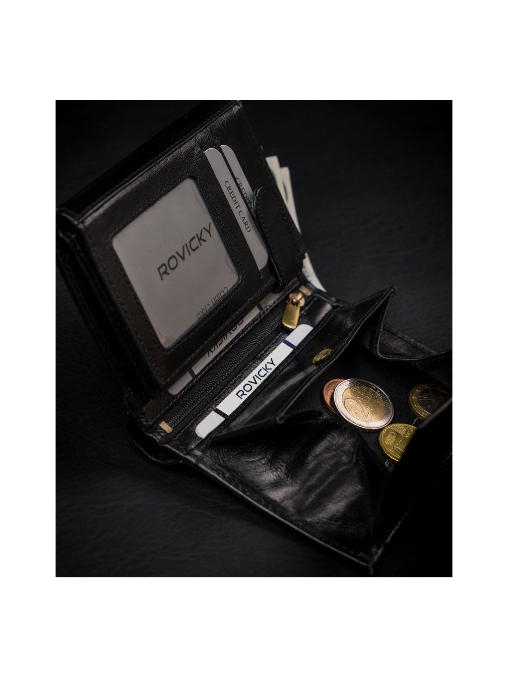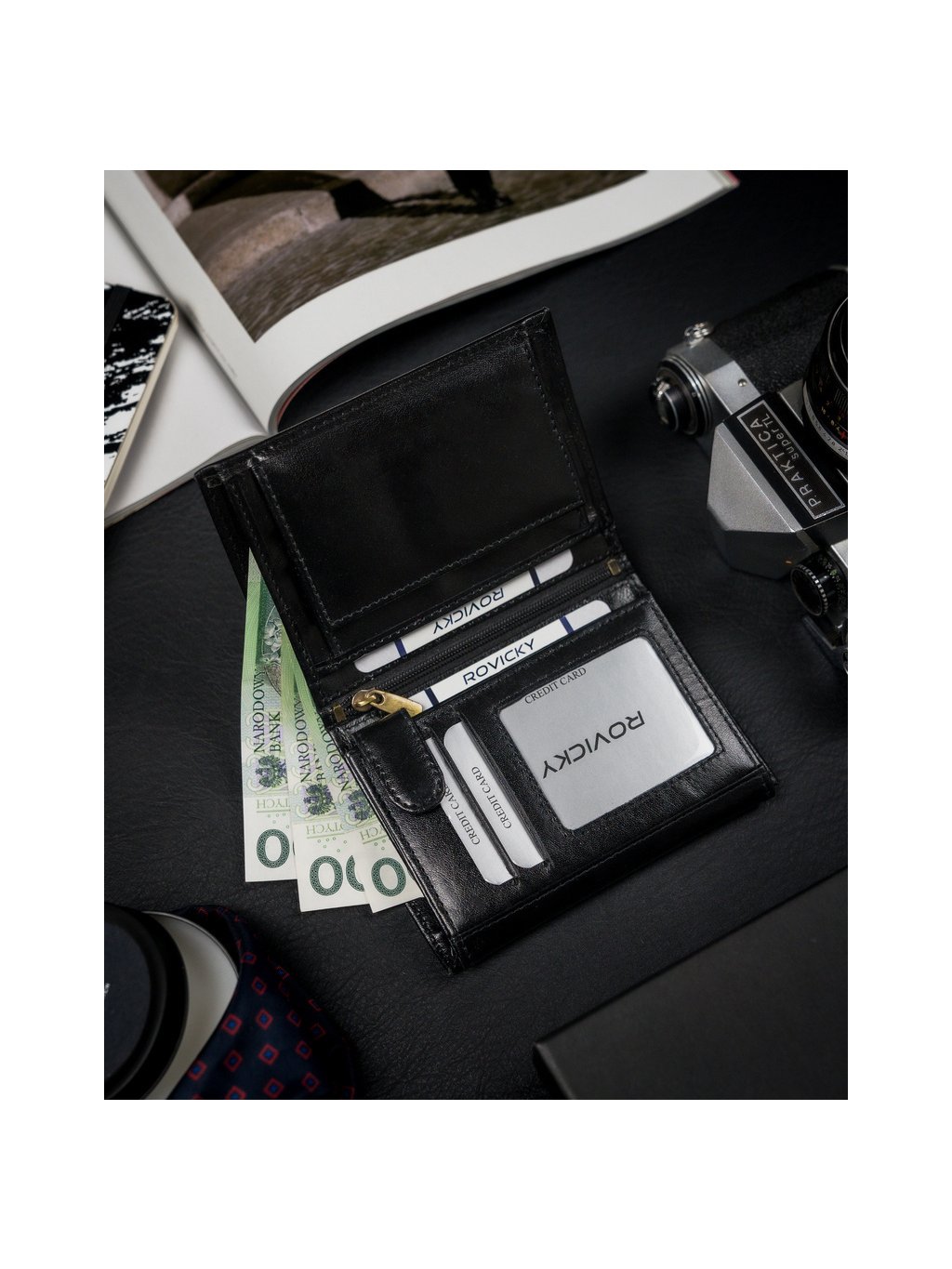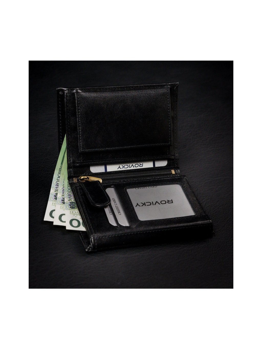 - uvnitř je kapsa na mince, 2 přihrádky na bankovky, 10 míst na karty, 4 místa na větší doklady
