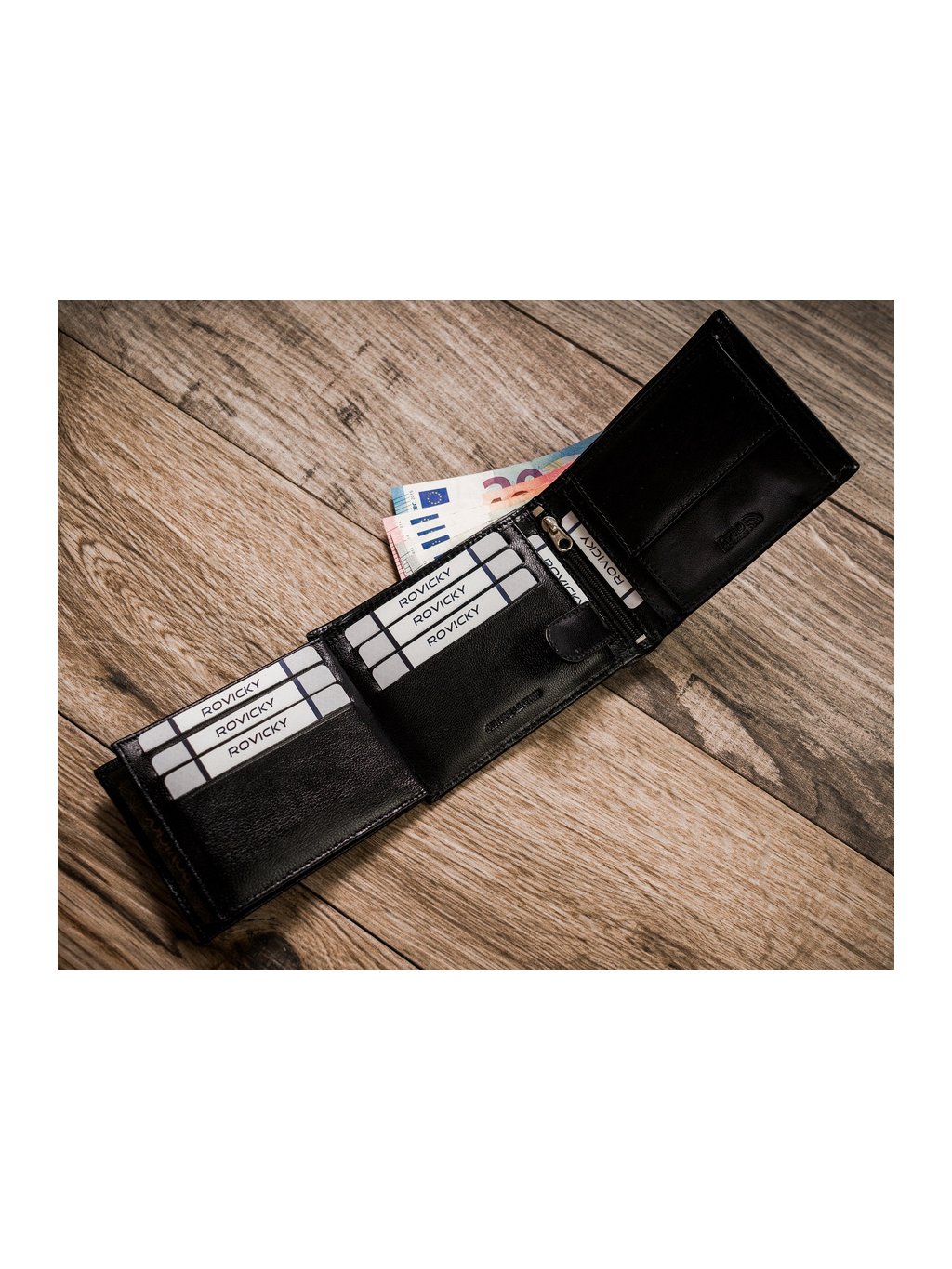 • uvnitř je kapsa na mince, 2 přihrádky na bankovky, 11 míst na karty, 4 místa na větší doklady, kapsa na zip
