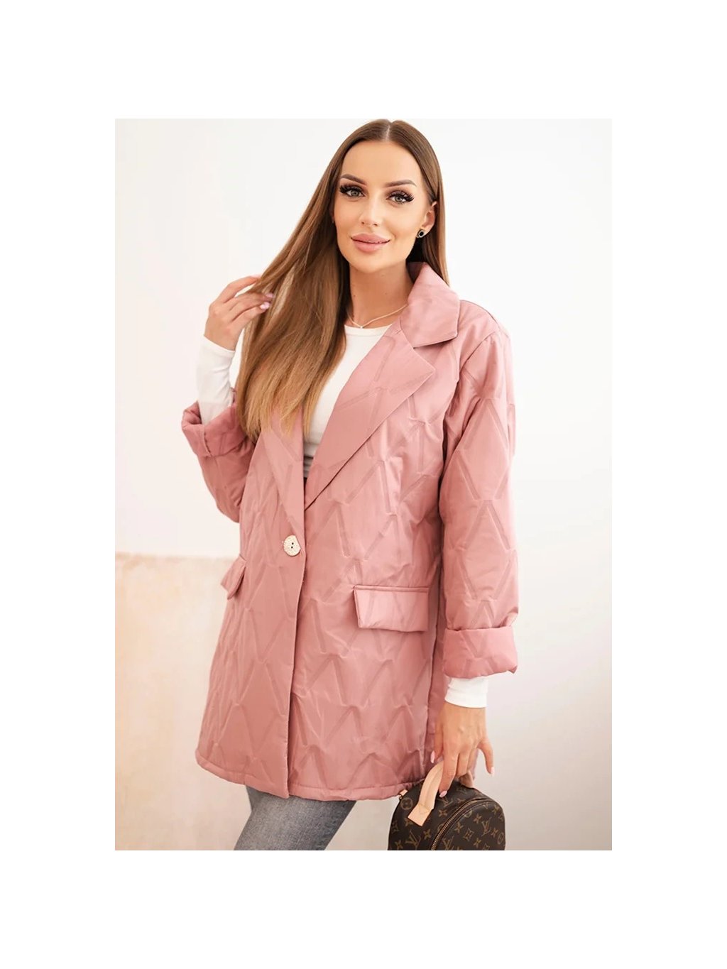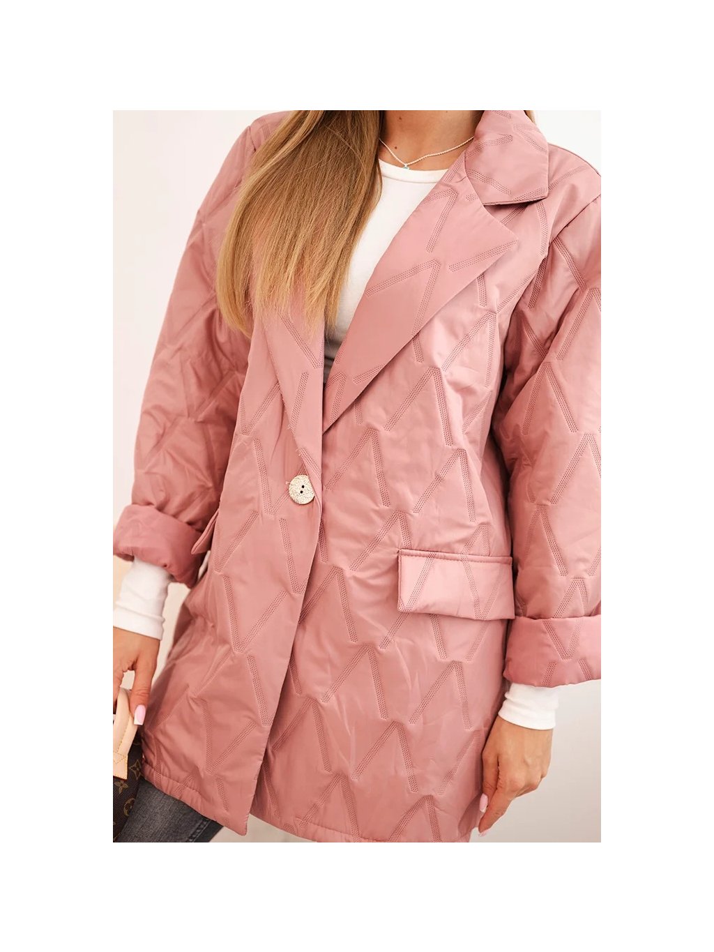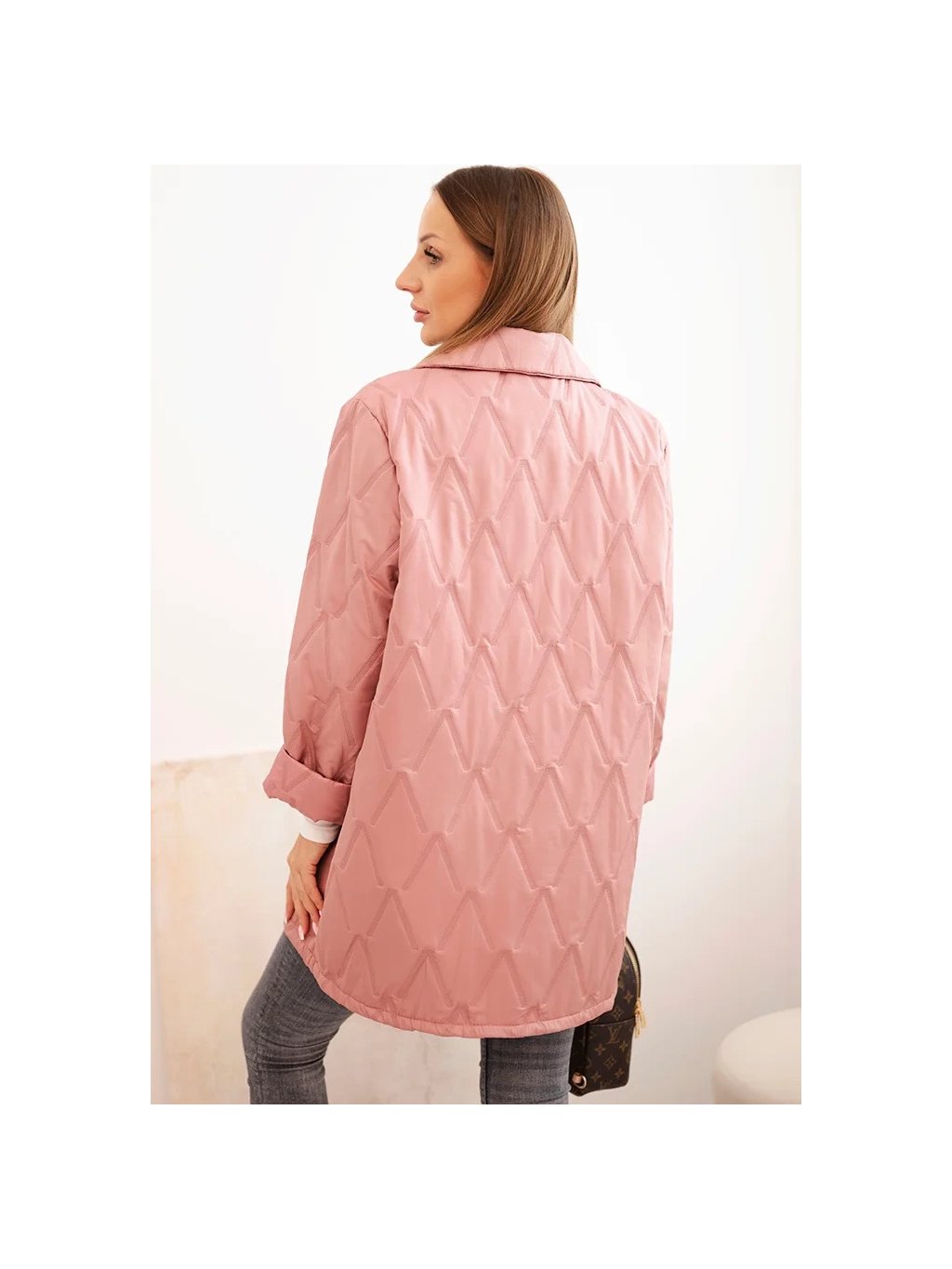 Růžová dámská Plus Size přechodová bunda s prošíváním
