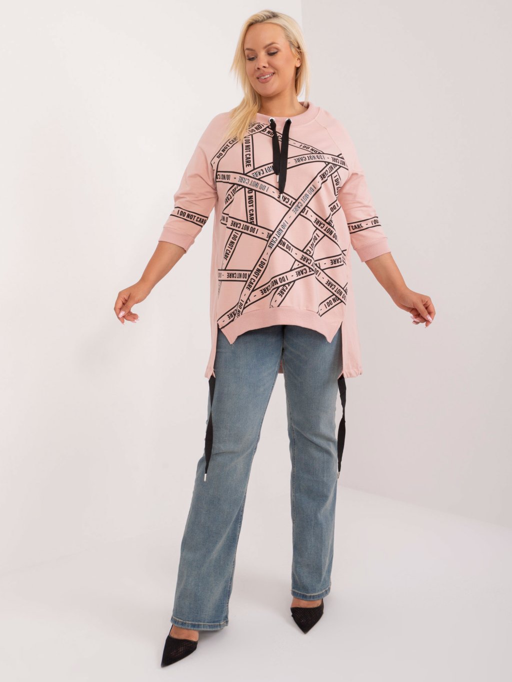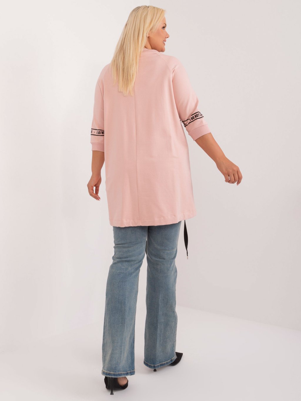 Růžová mikinová tunika s potiskem a 3/4 rukávem