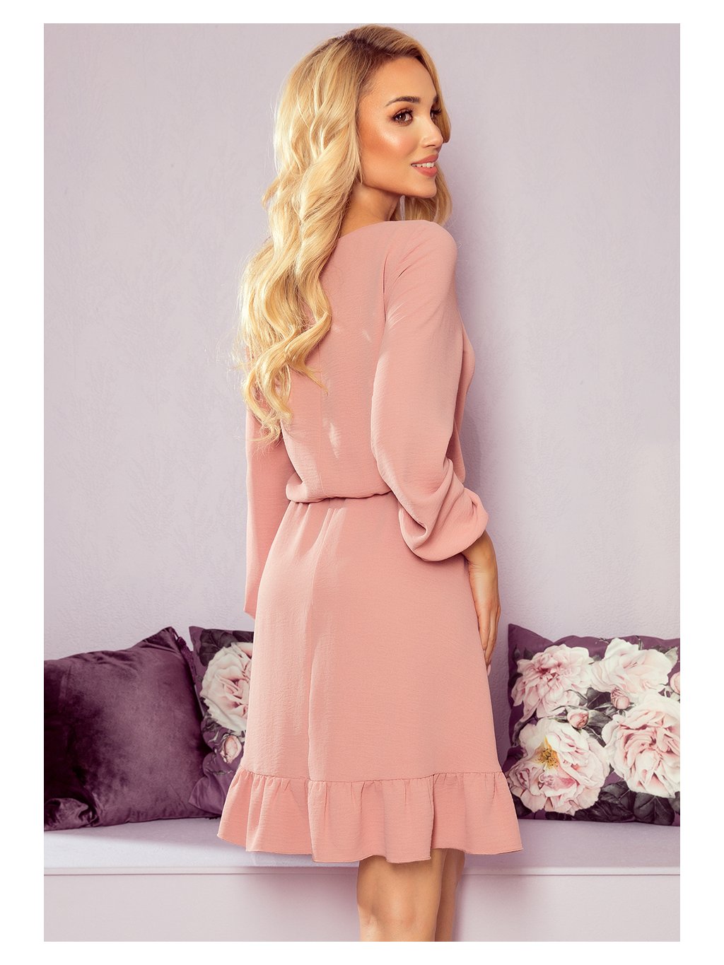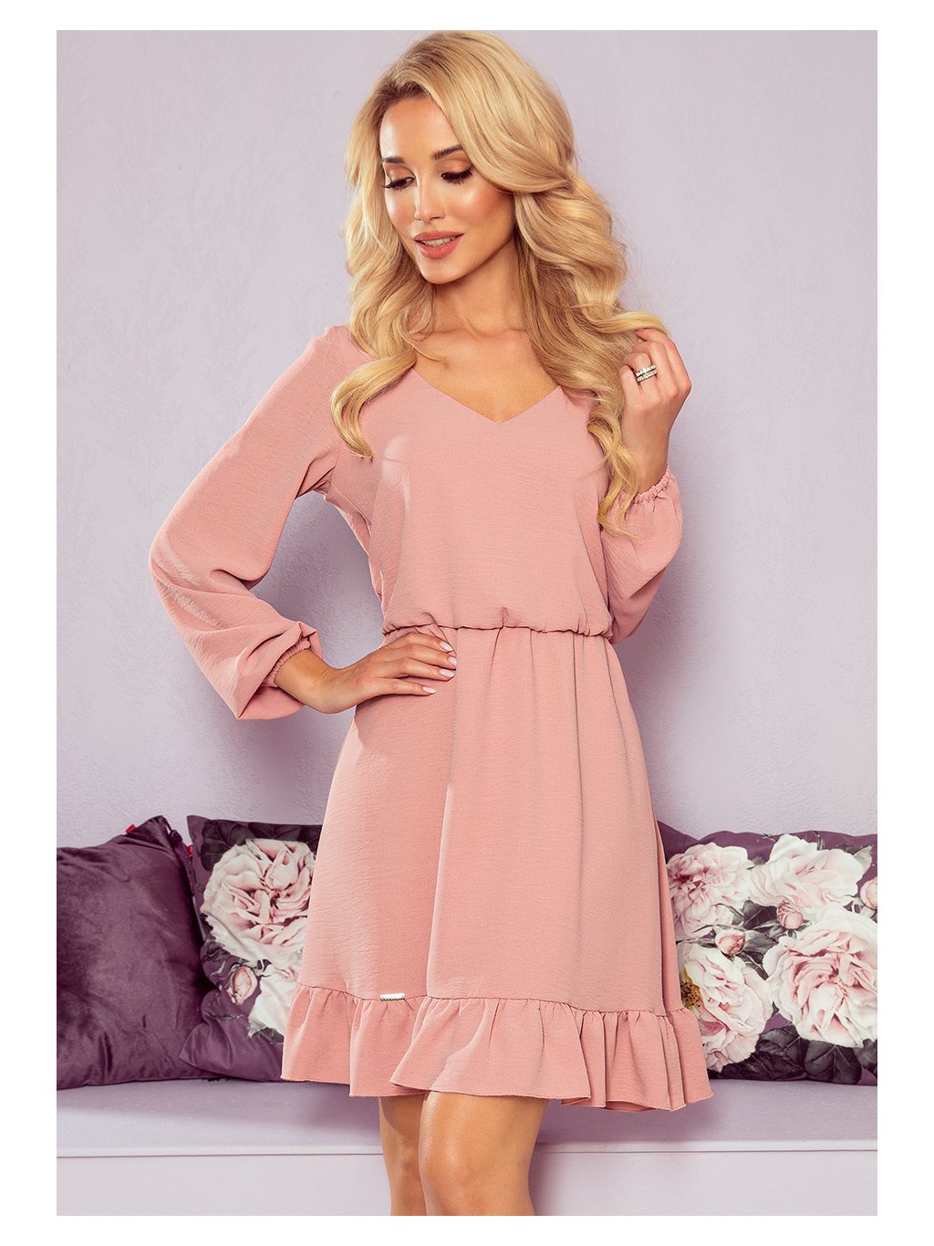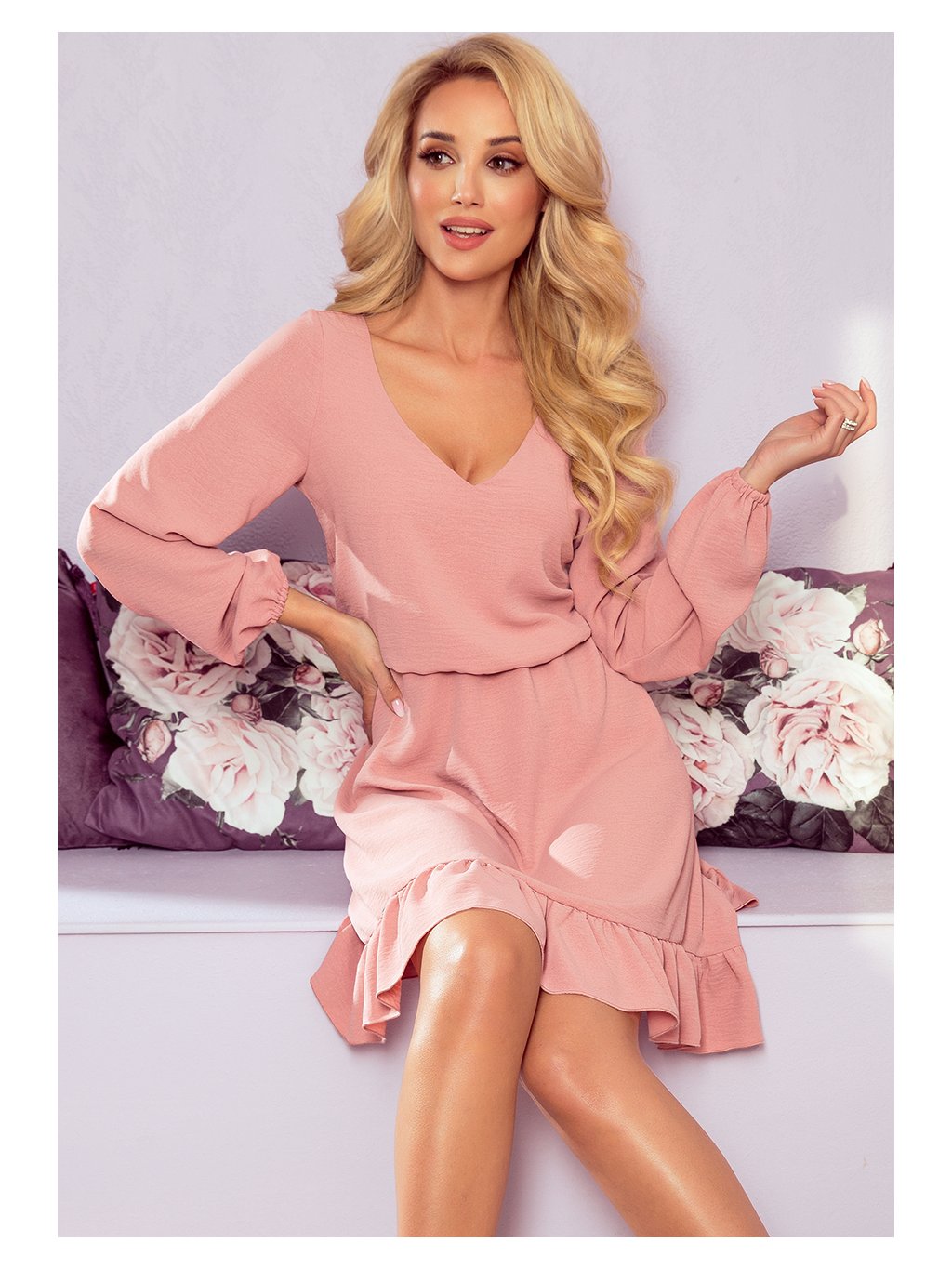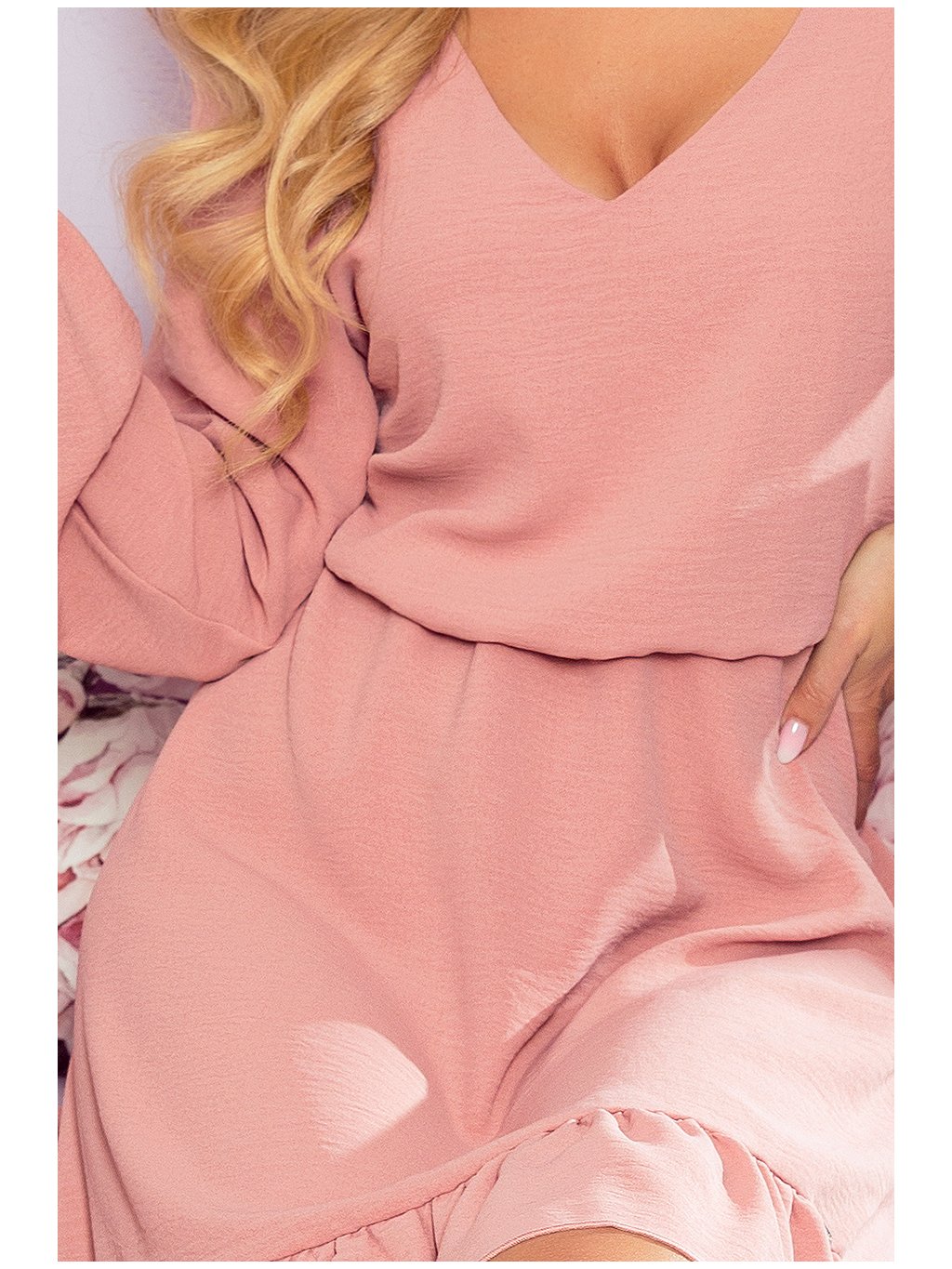 Růžové boho šaty s výstřihem a volánkem LUISA