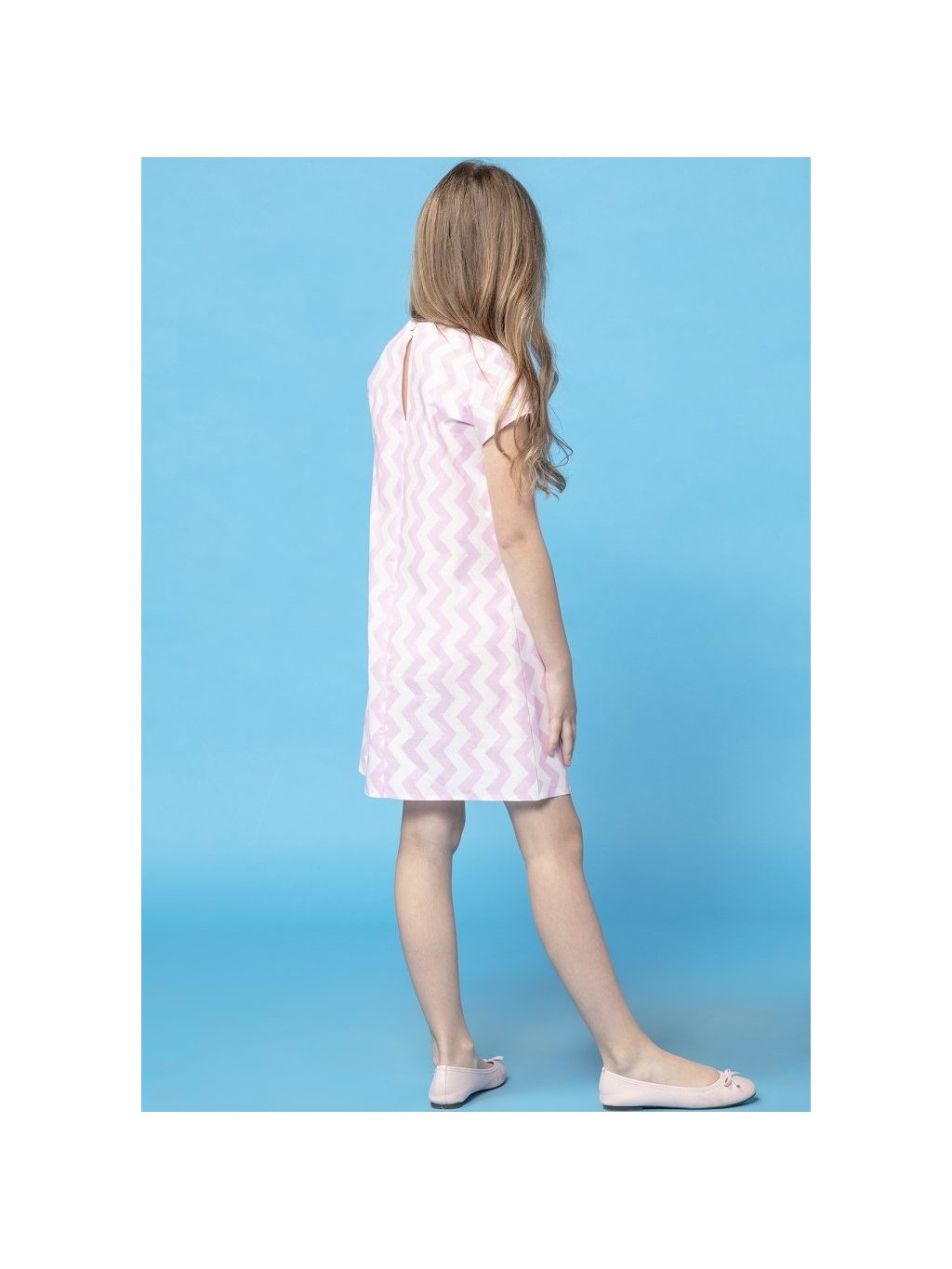 Růžovo-bílé dívčí jednoduché šaty máma a dcera s geometrickým vzorem
