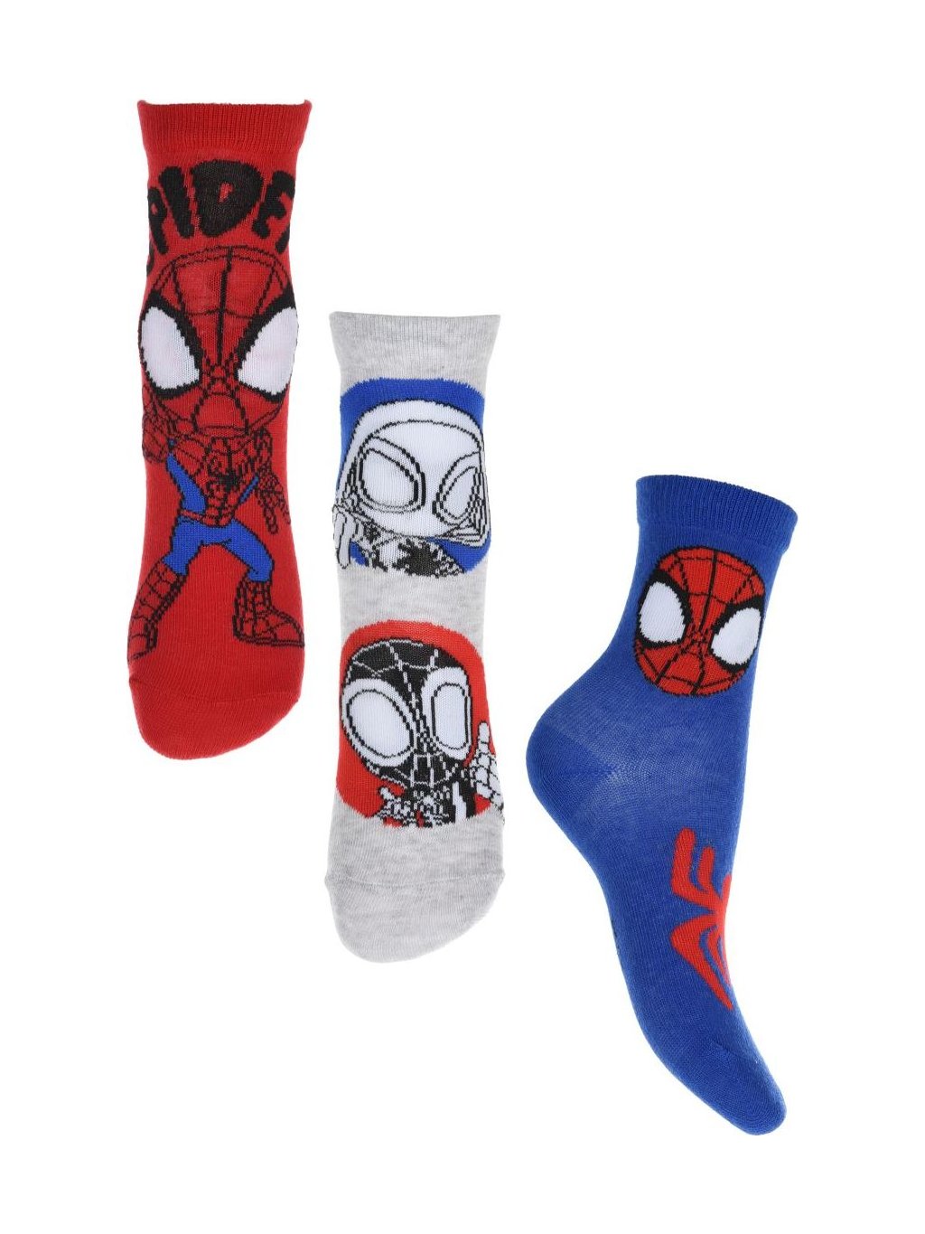 Sada tří párů chlapeckých ponožek Spidey a jeho úžasní přátelé - modrá/šedá/červená