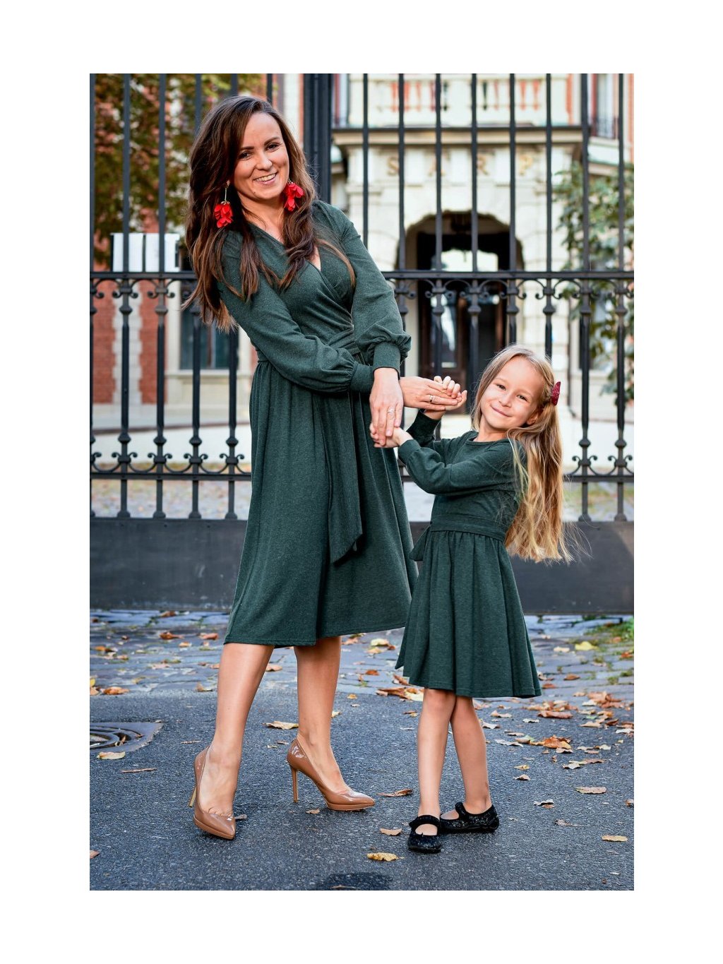 Šaty s páskem pro maminku a dceru - tmavě zelená
