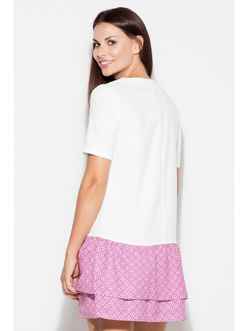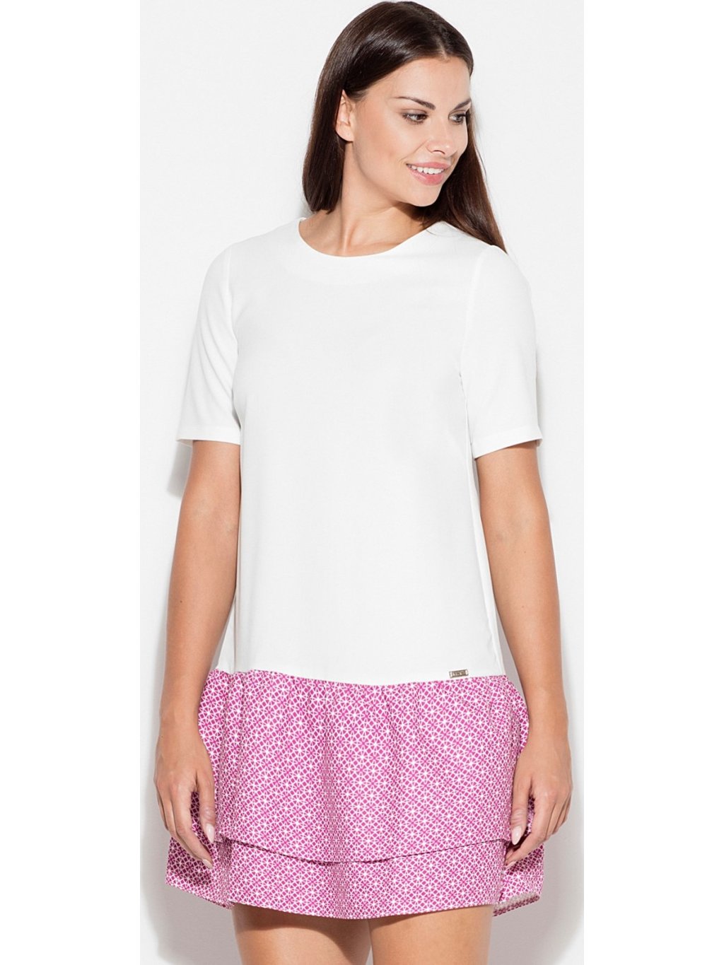 Šaty se vzorovanou sukýnkou K412 Ecru pattern 37