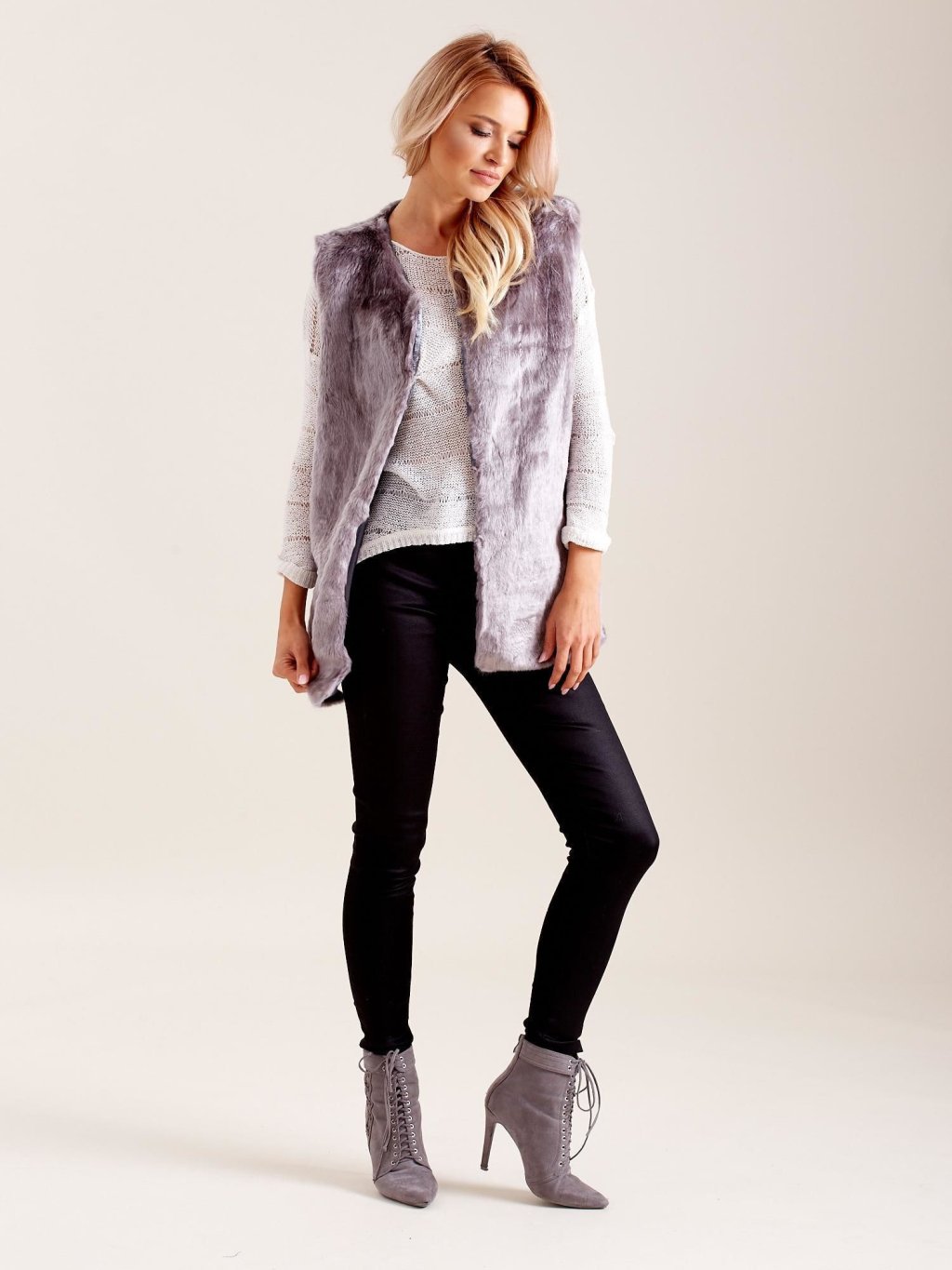 Šedá dámská chlupatá vesta
