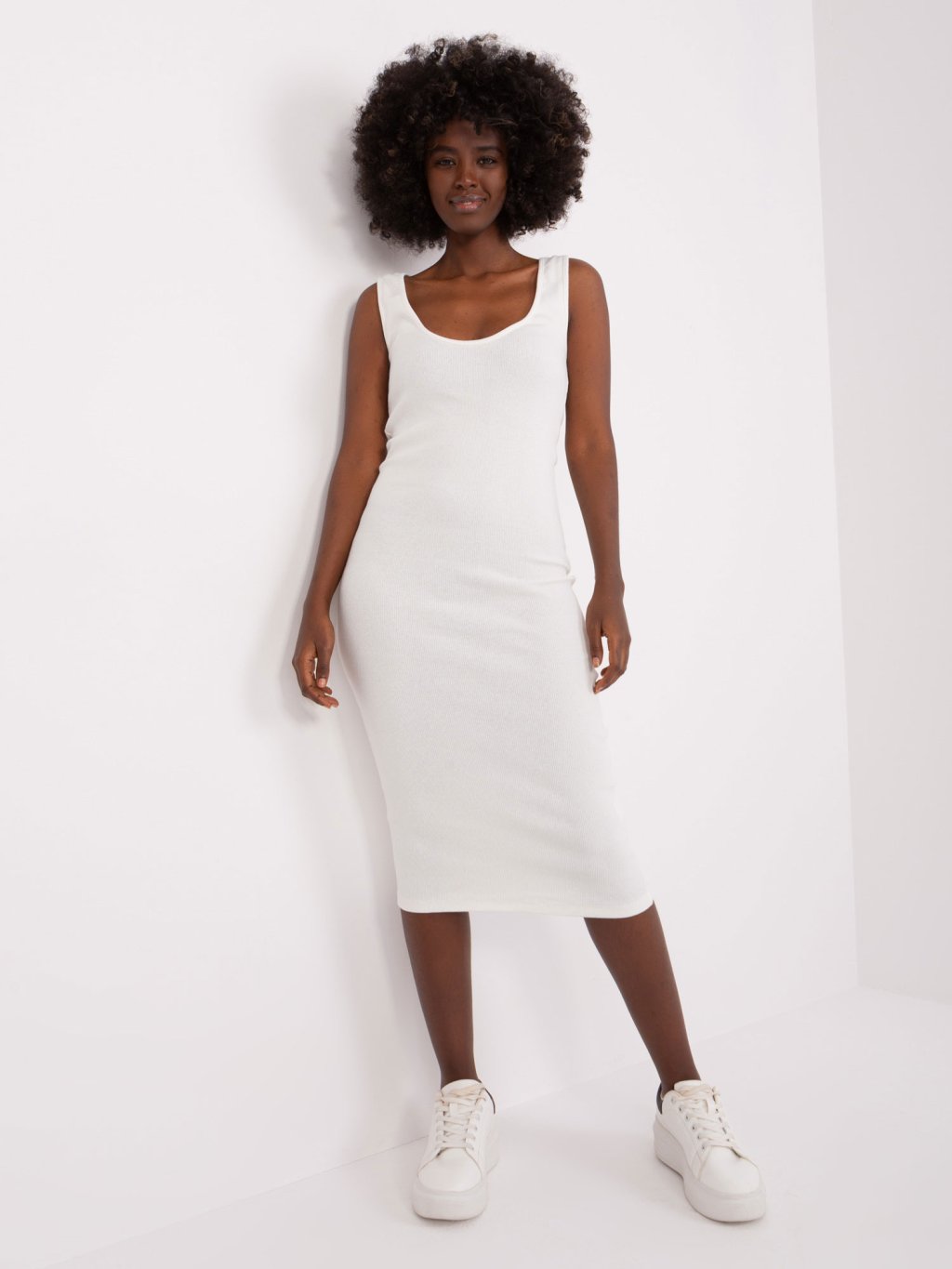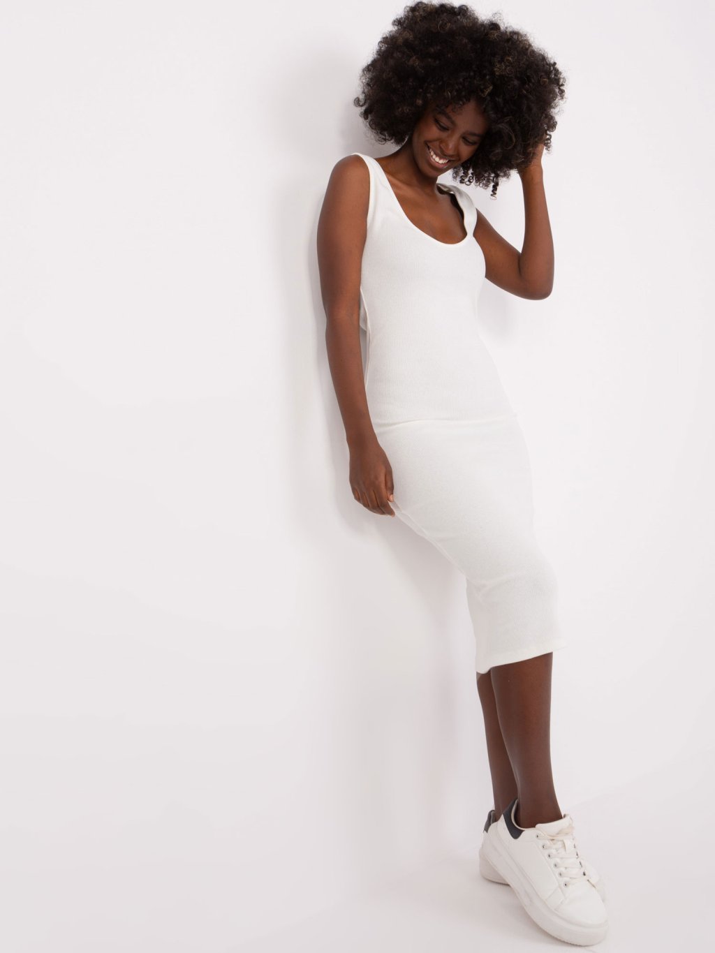 Modelka na obrázcích je vysoká 168 cm, obvod přes prsa 82 cm, obvod pasu 62 cm a boky 93 cm.