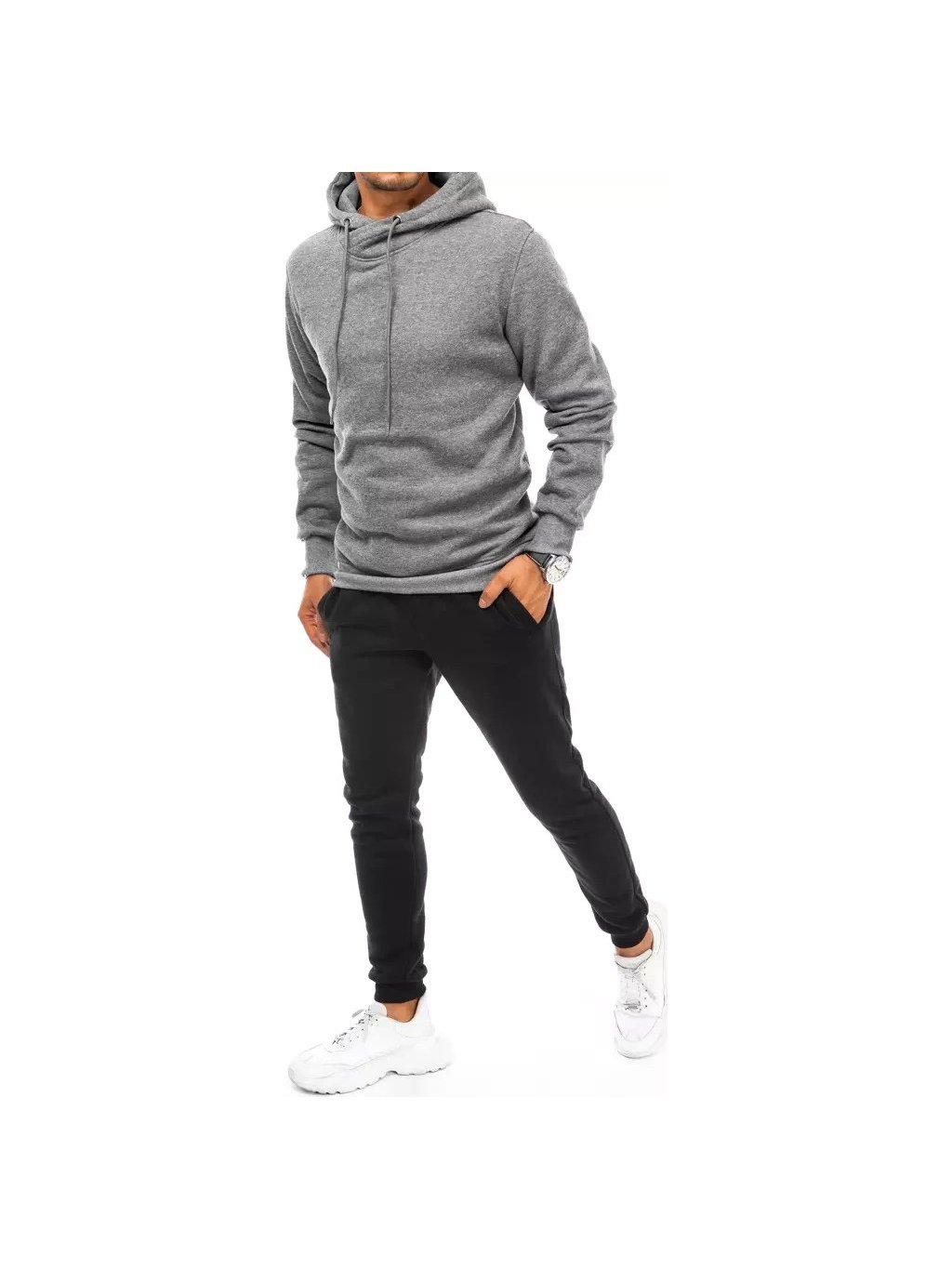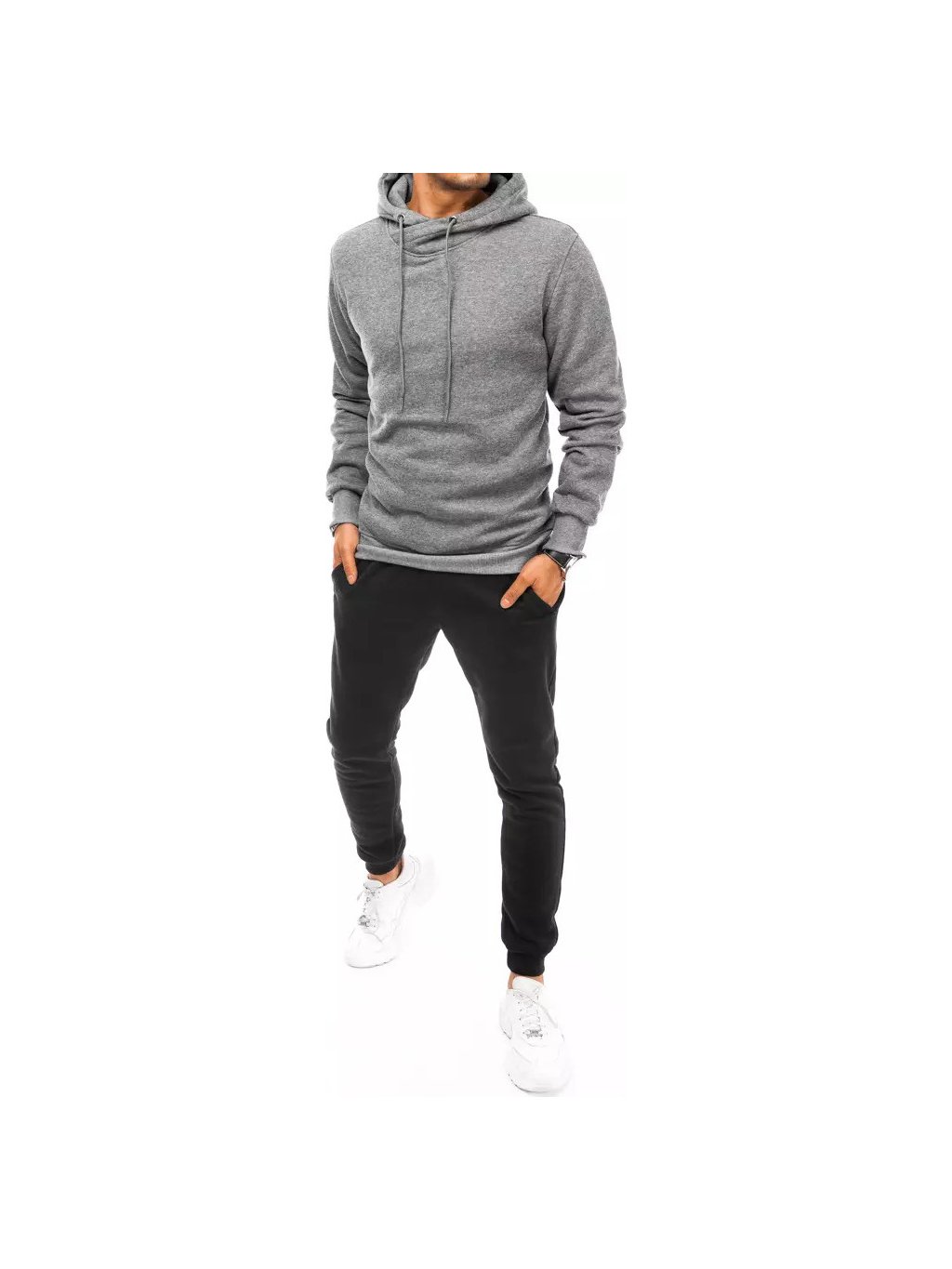 Šedo-černá tepláková souprava s kapucí
