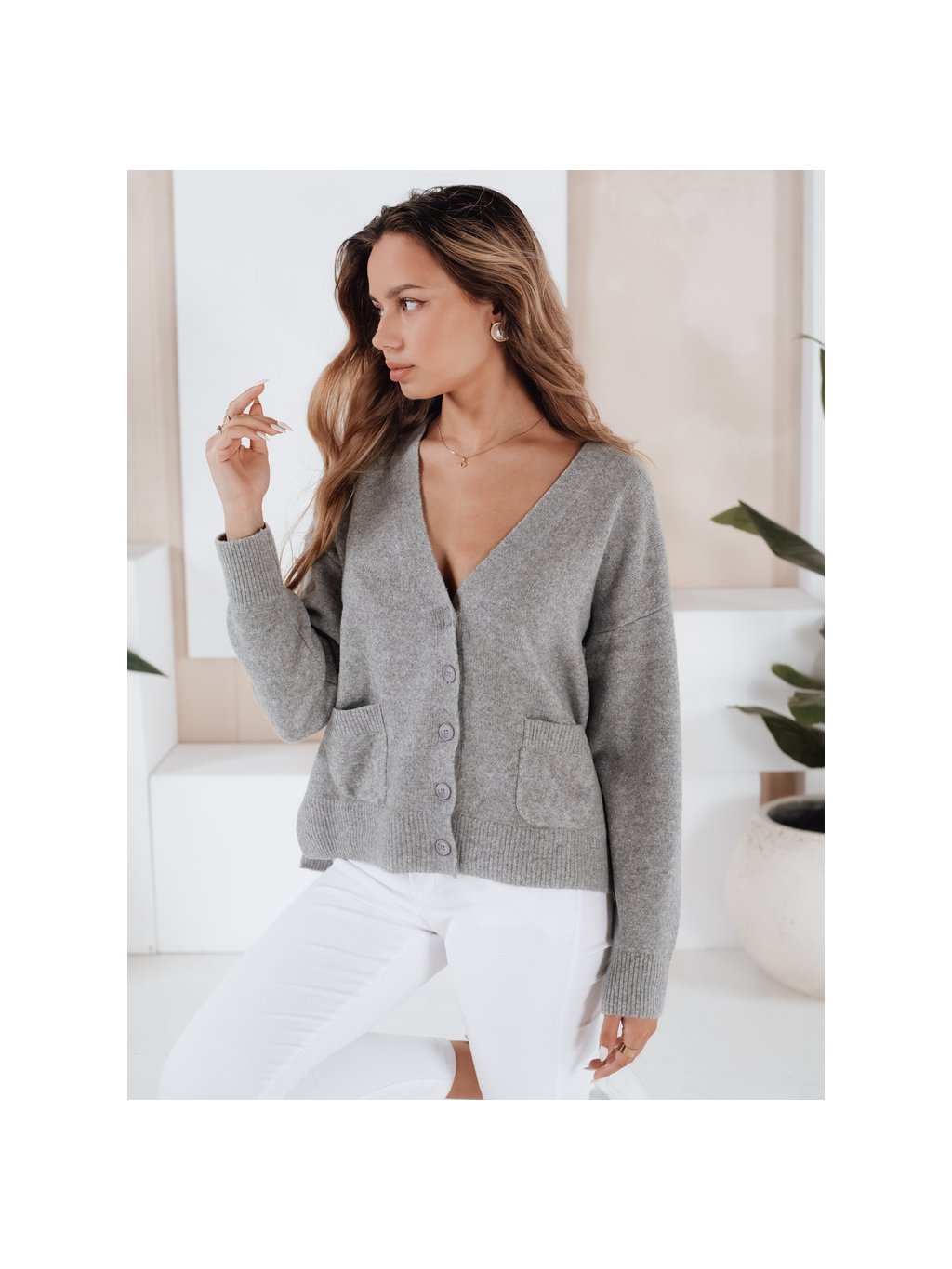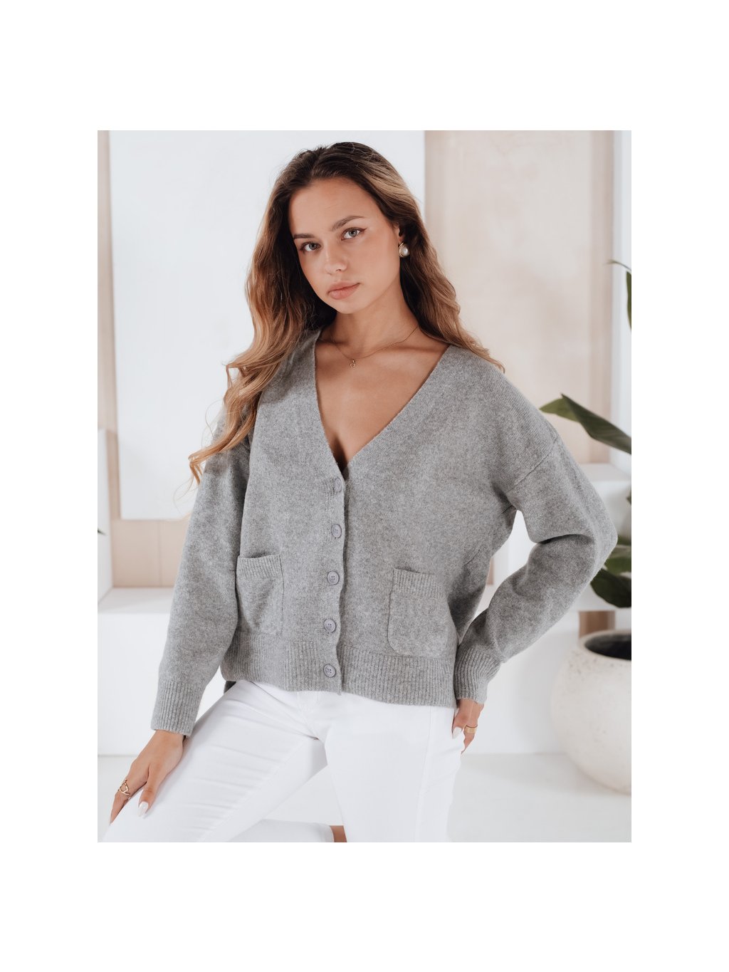Šedý dámský krátký kardigan SORELIE s viskózou