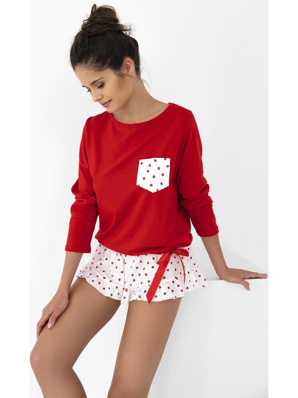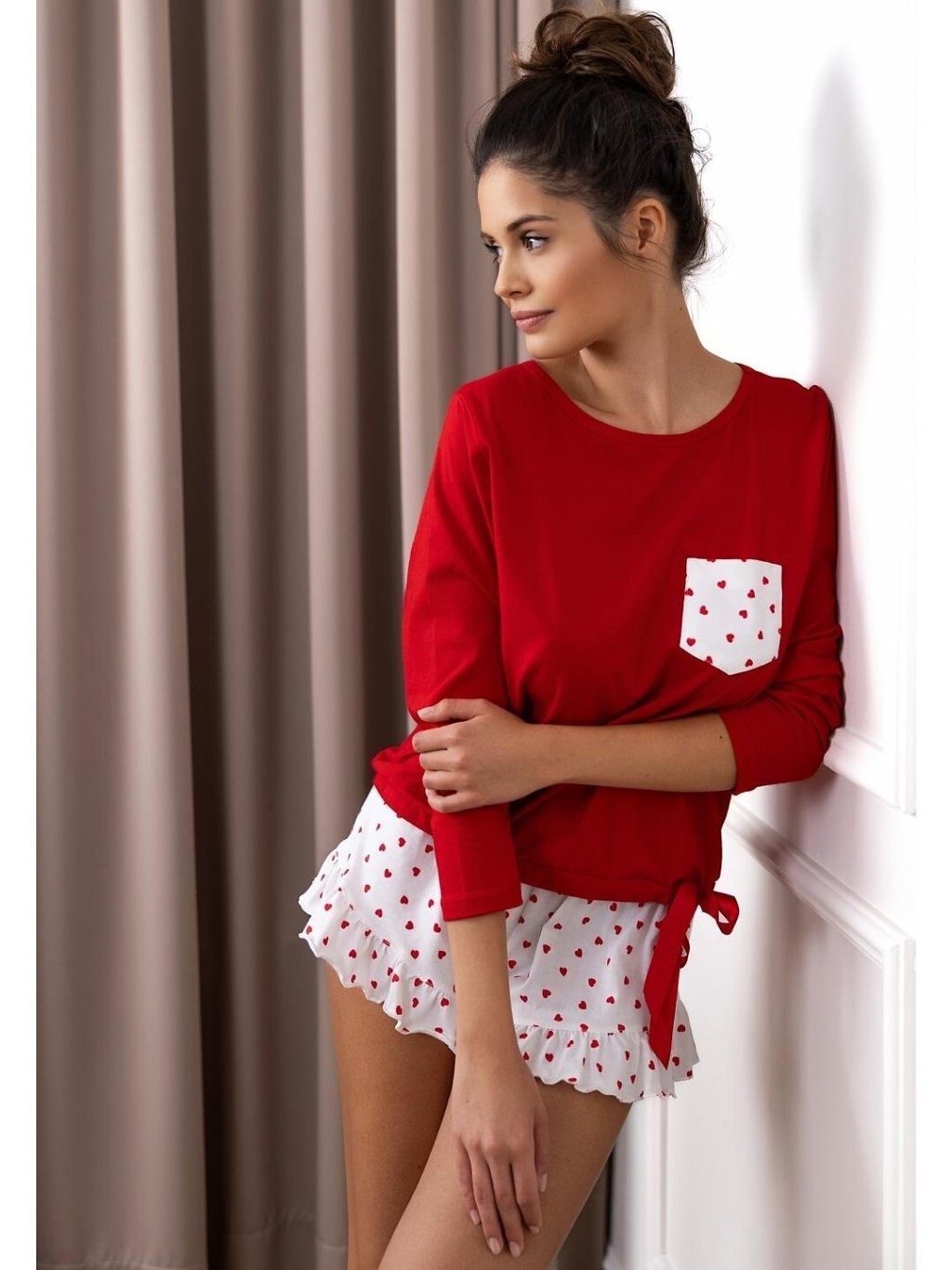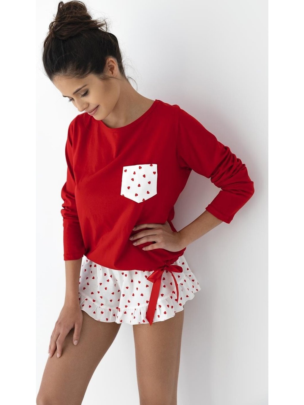 Sensis Červeno-smetanové dámské pyžamo se vzorem srdíček