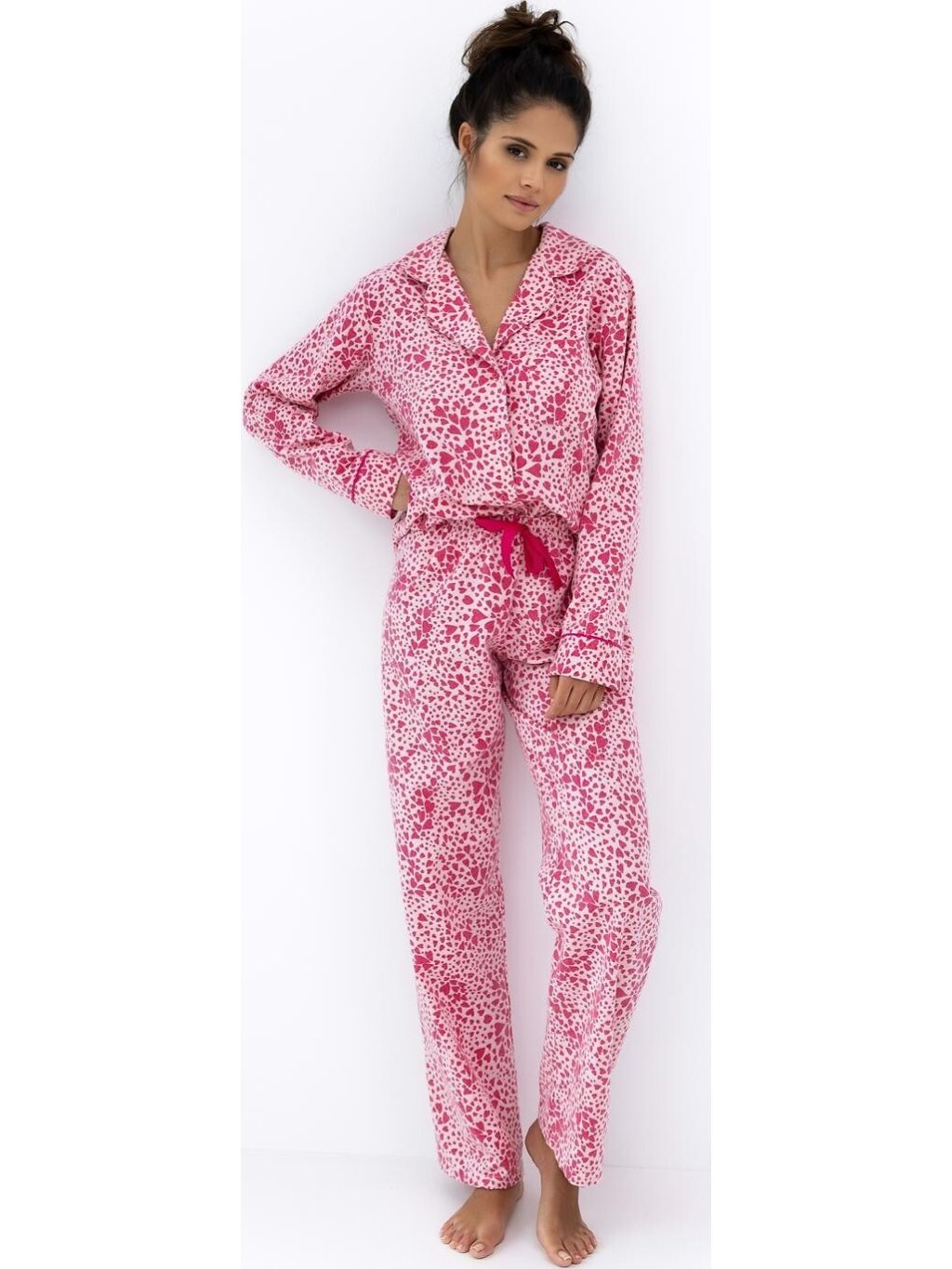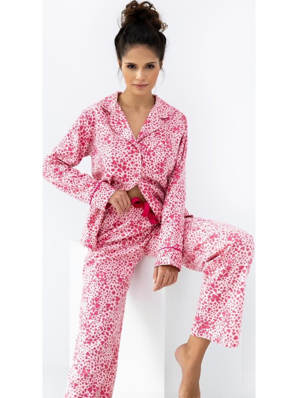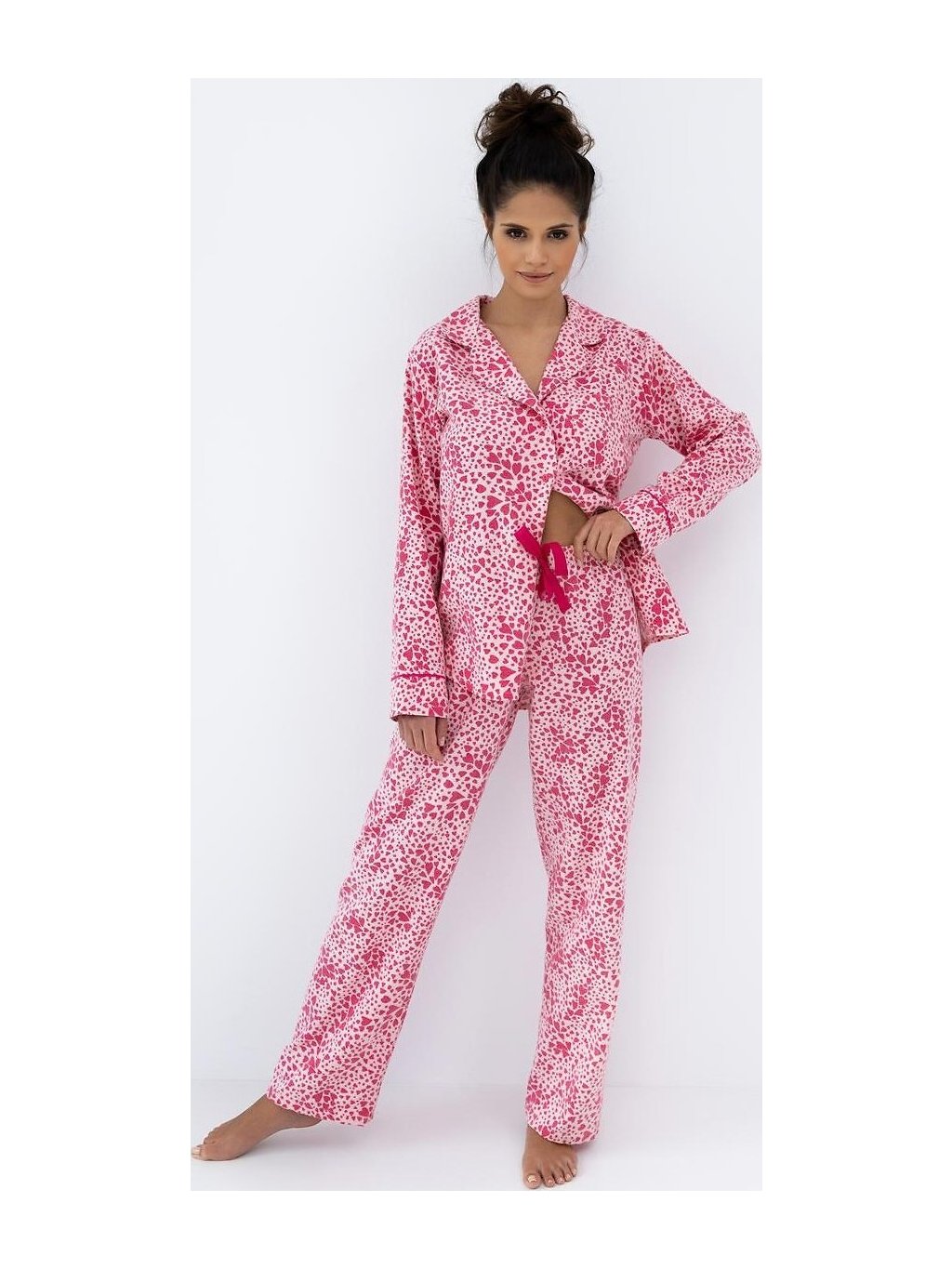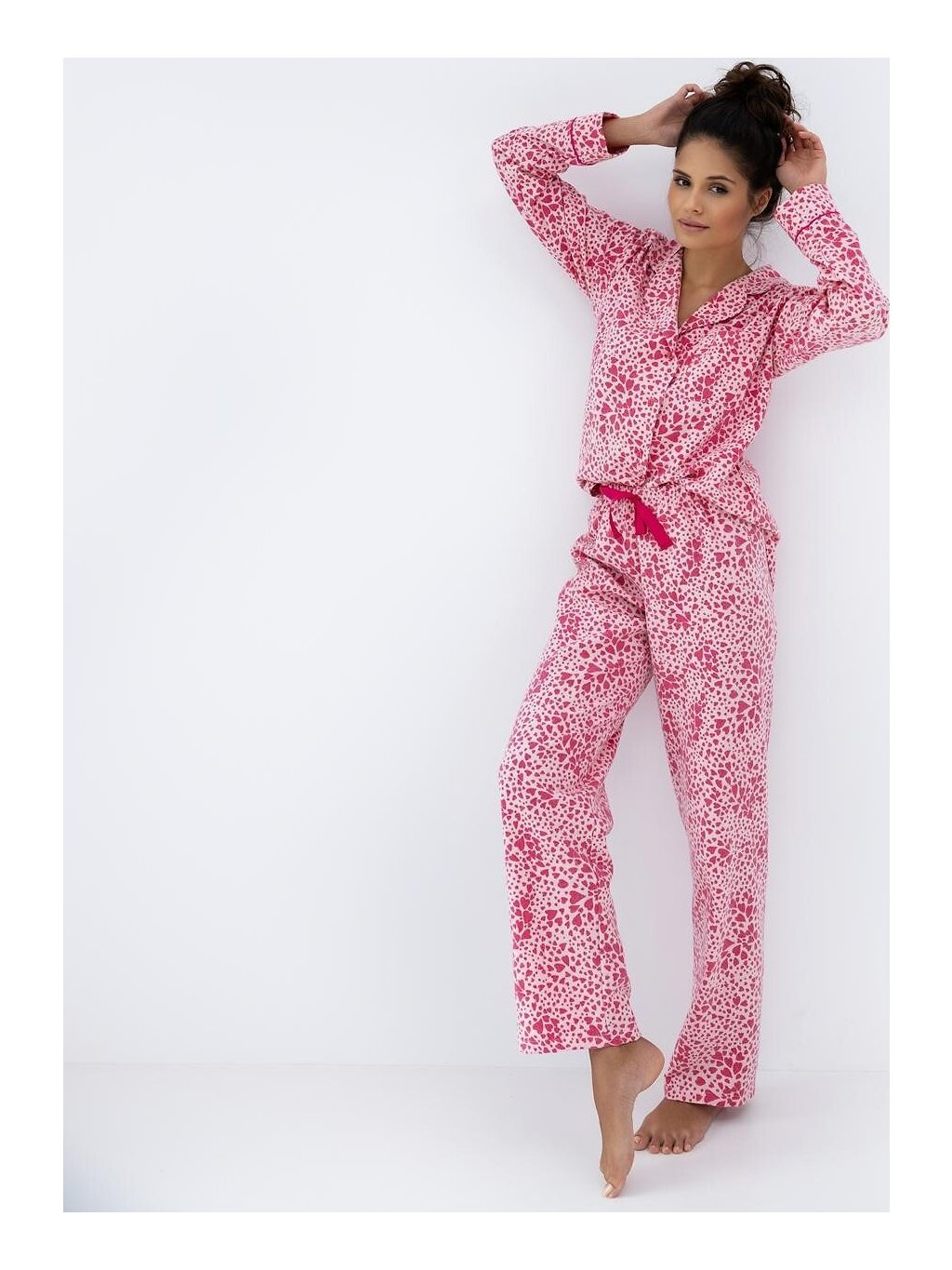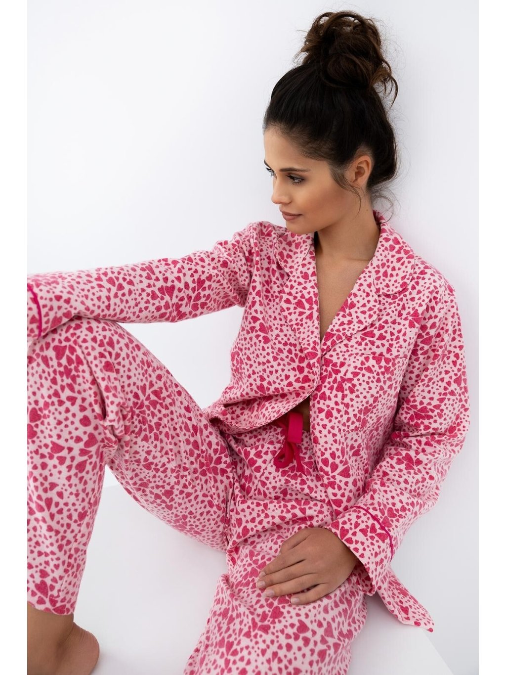 Sensis Dlouhé dámské pyžamo z jemného flanelu se srdíčky