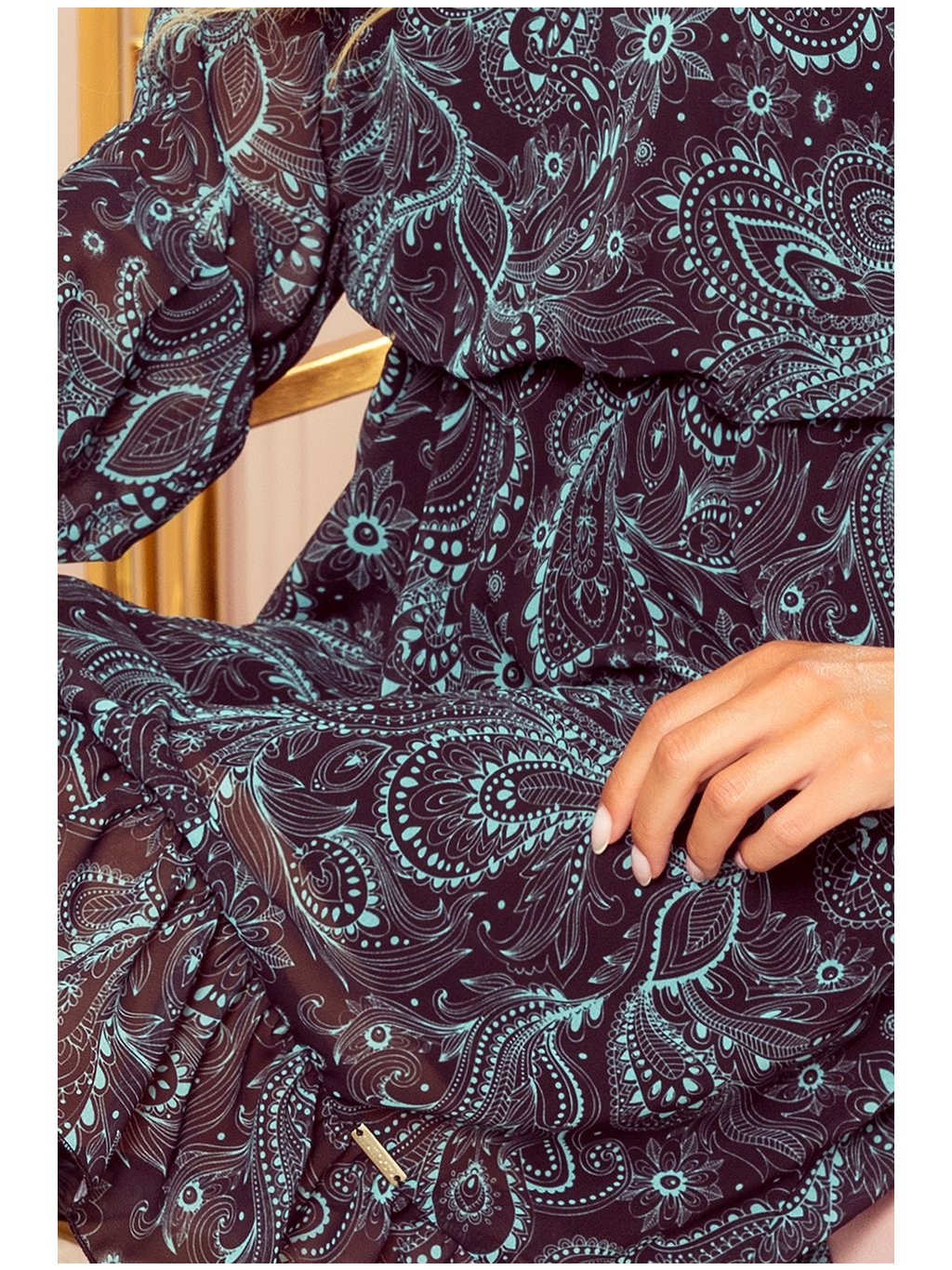 Šifónové boho šaty s tyrkysovým vzorem LUISA