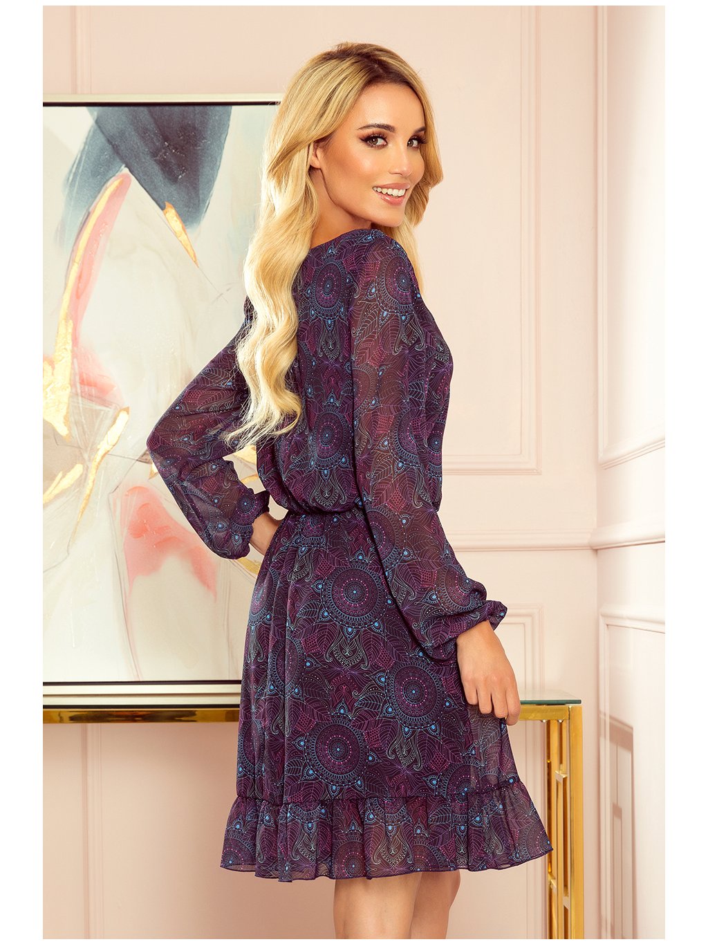 Šifónové modro-růžové boho šaty se vzorem LUISA