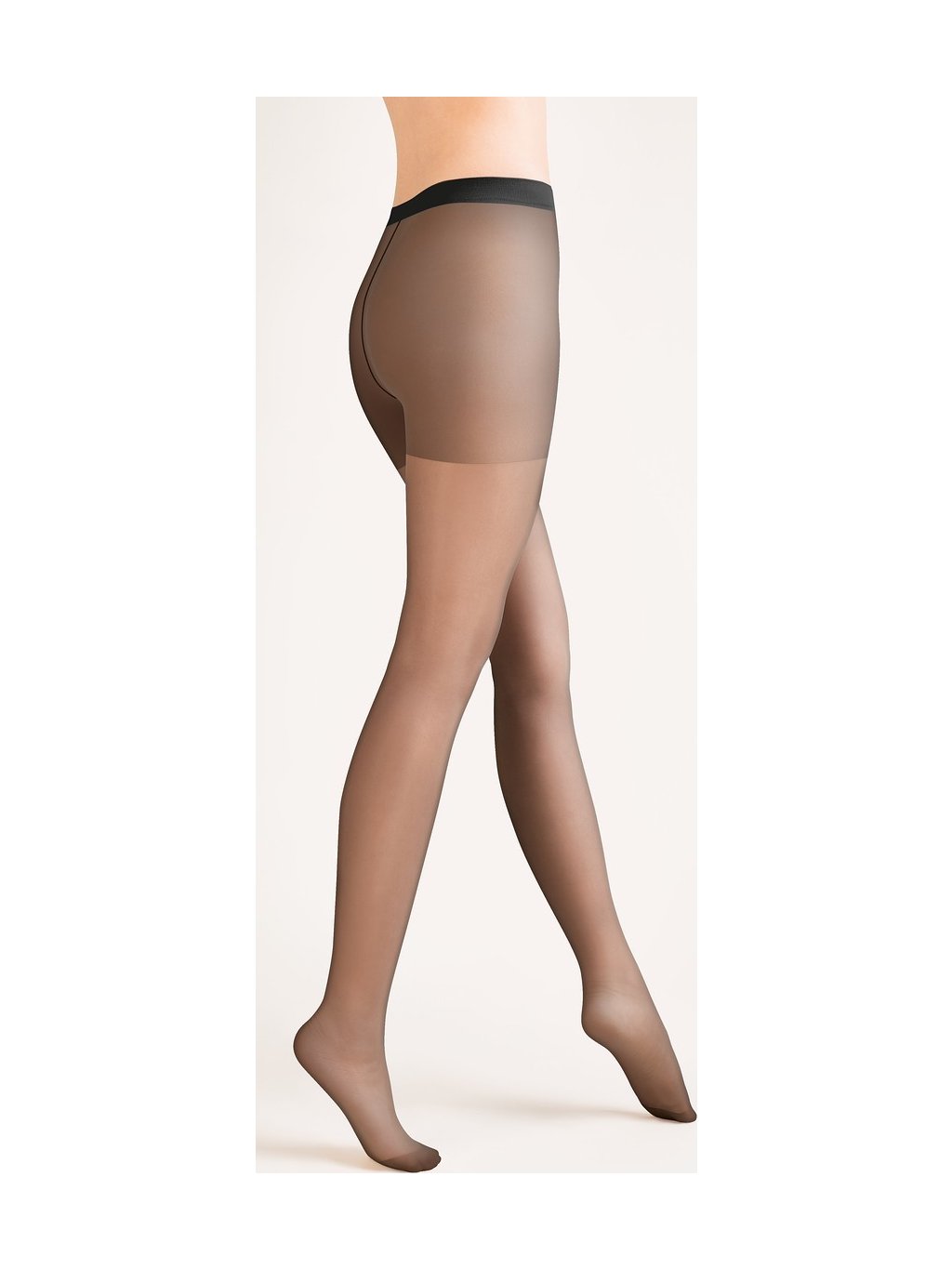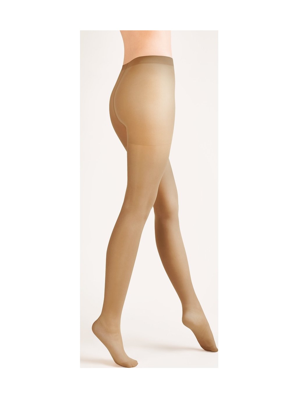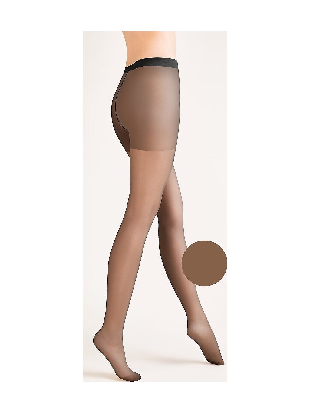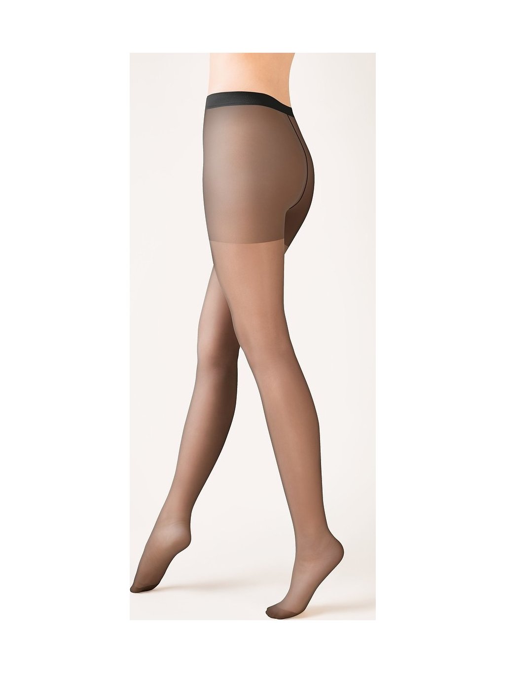 15 den lycrové punčocháče, matné, průhledné, zesílené v kalhotkové části a špičkách, s velkým klínem.
