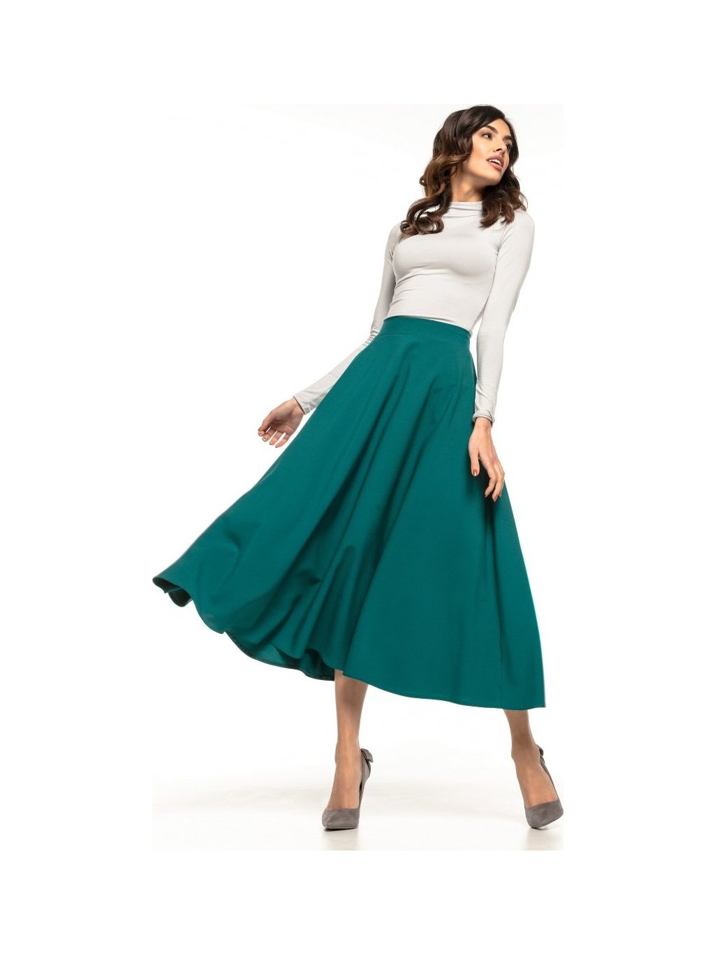Smaragdová dámská midi sukně s rozšířeným střihem