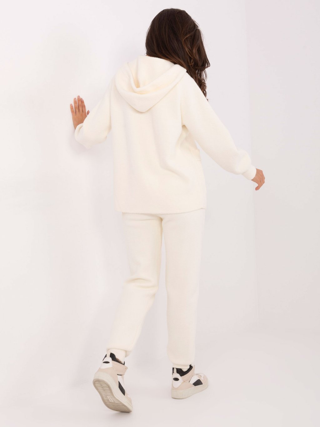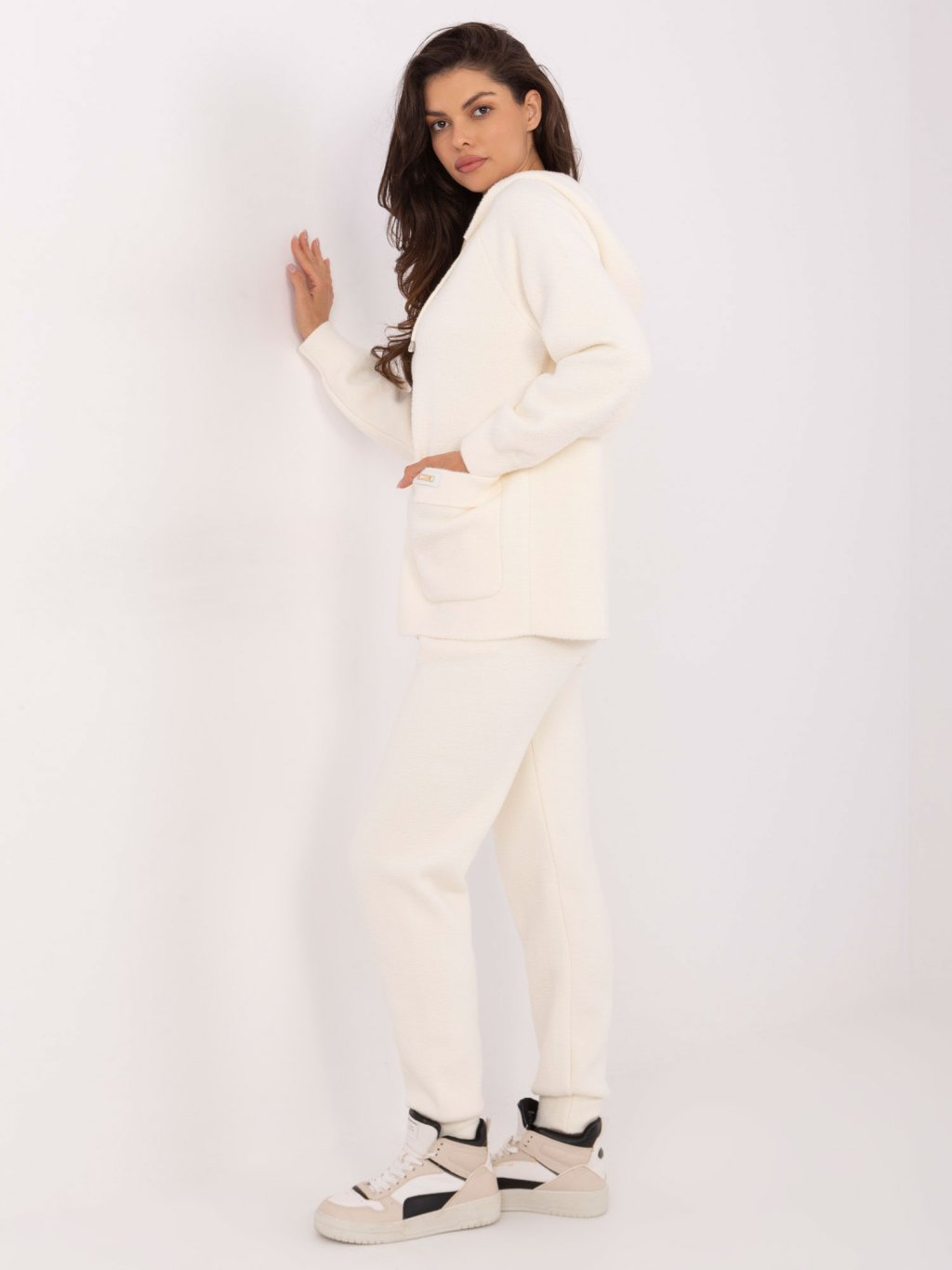 Smetanová dámská pletená souprava mikiny a kalhot