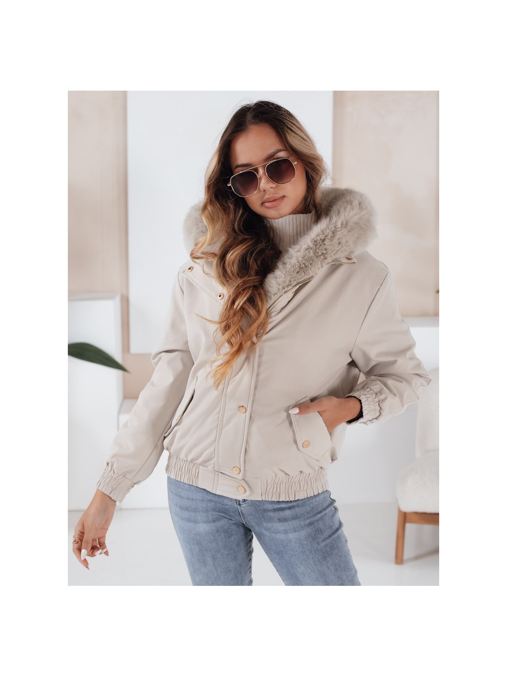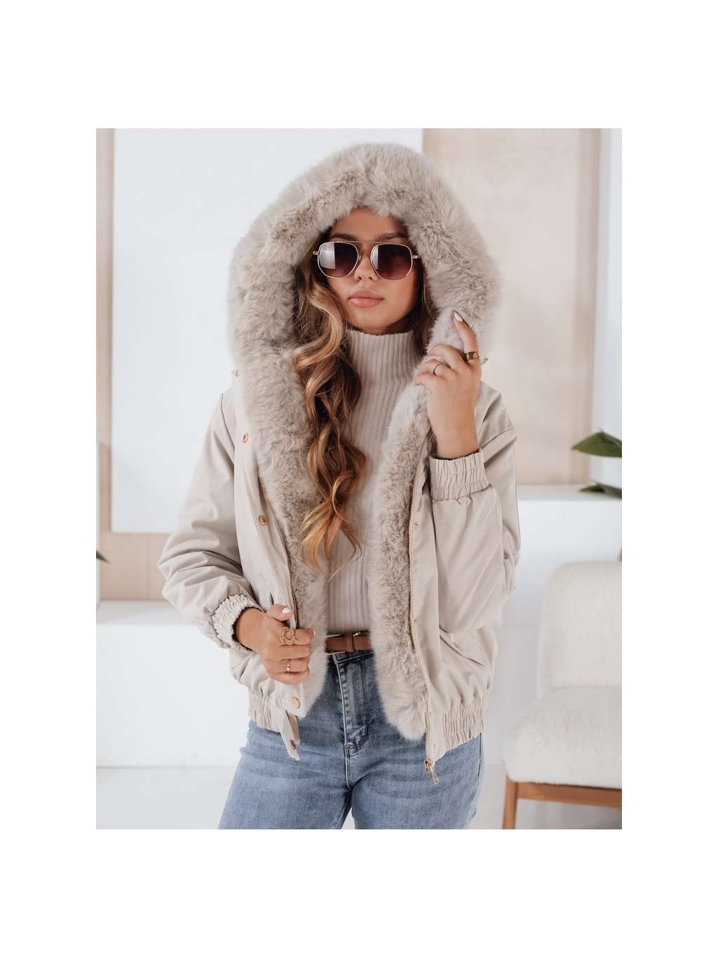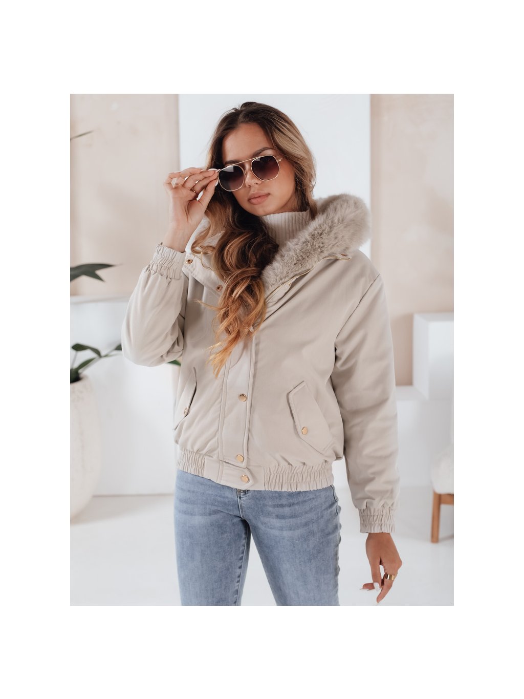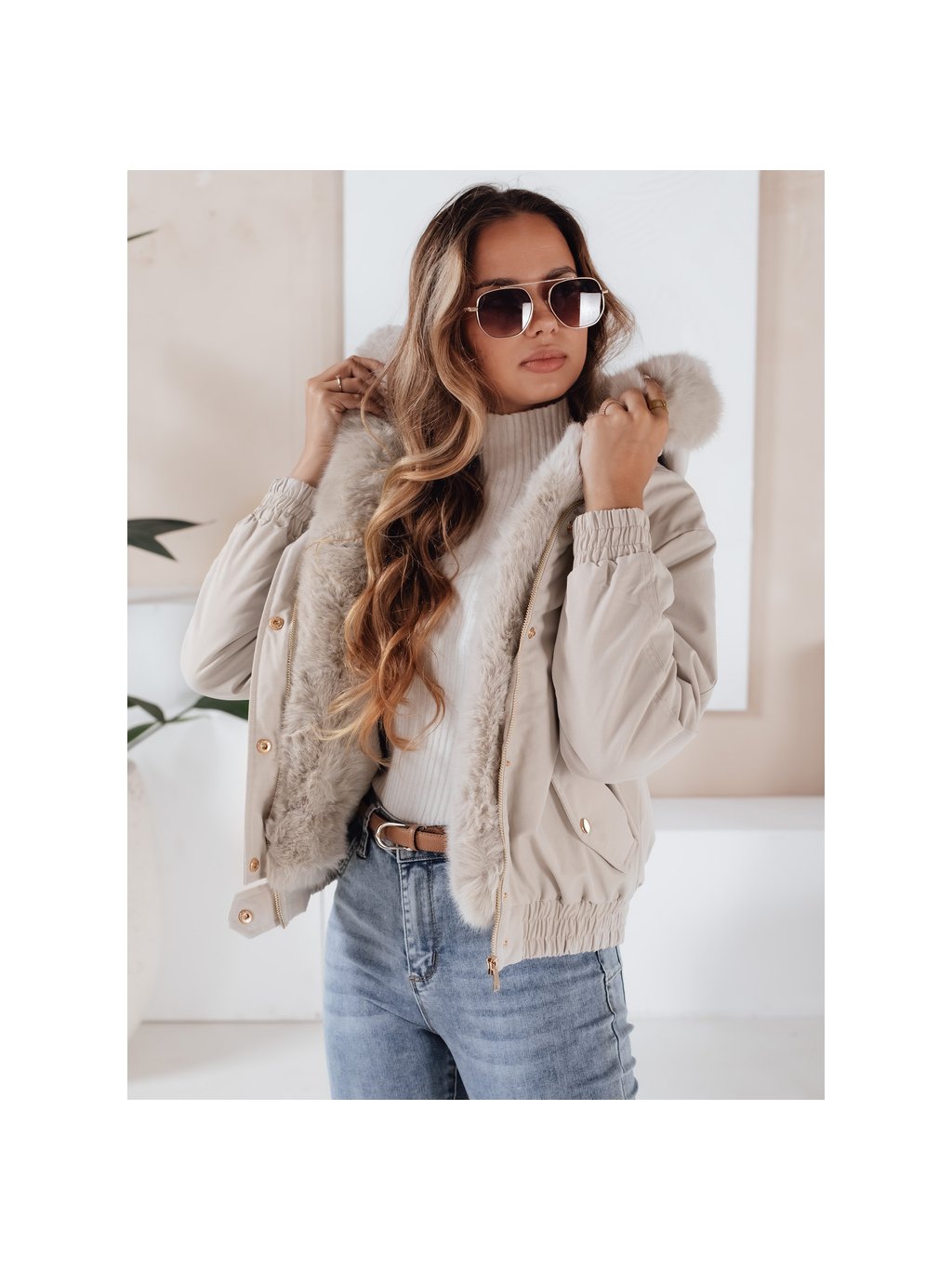 Smetanová dámská zimní krátká bunda VESSADA s kožíškem