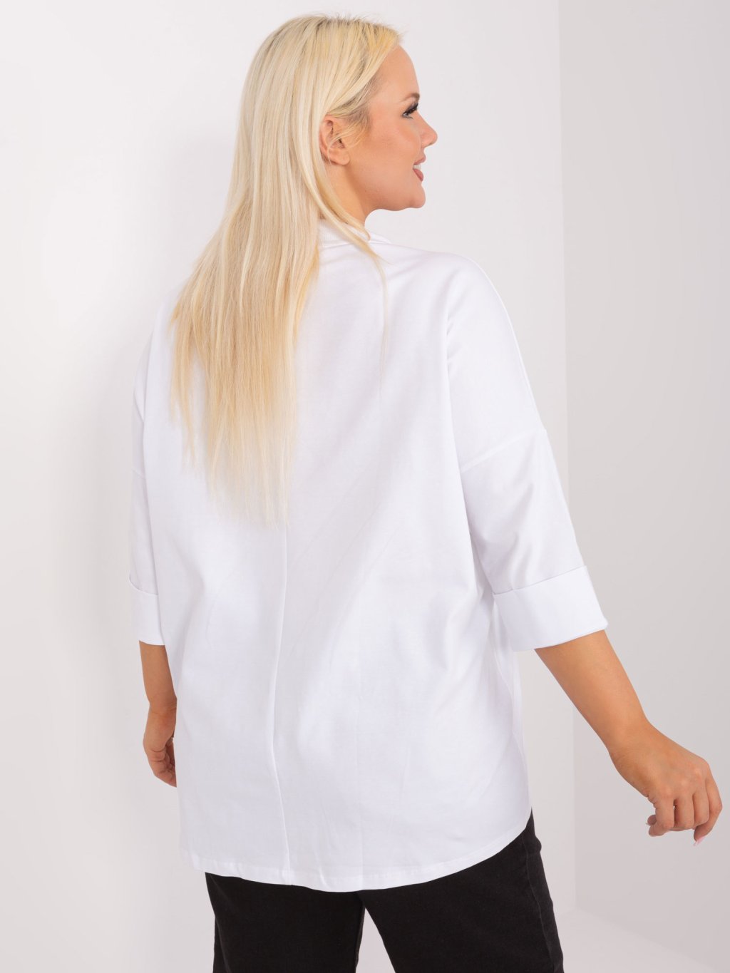 Modelka je oblečena do velikosti one size.