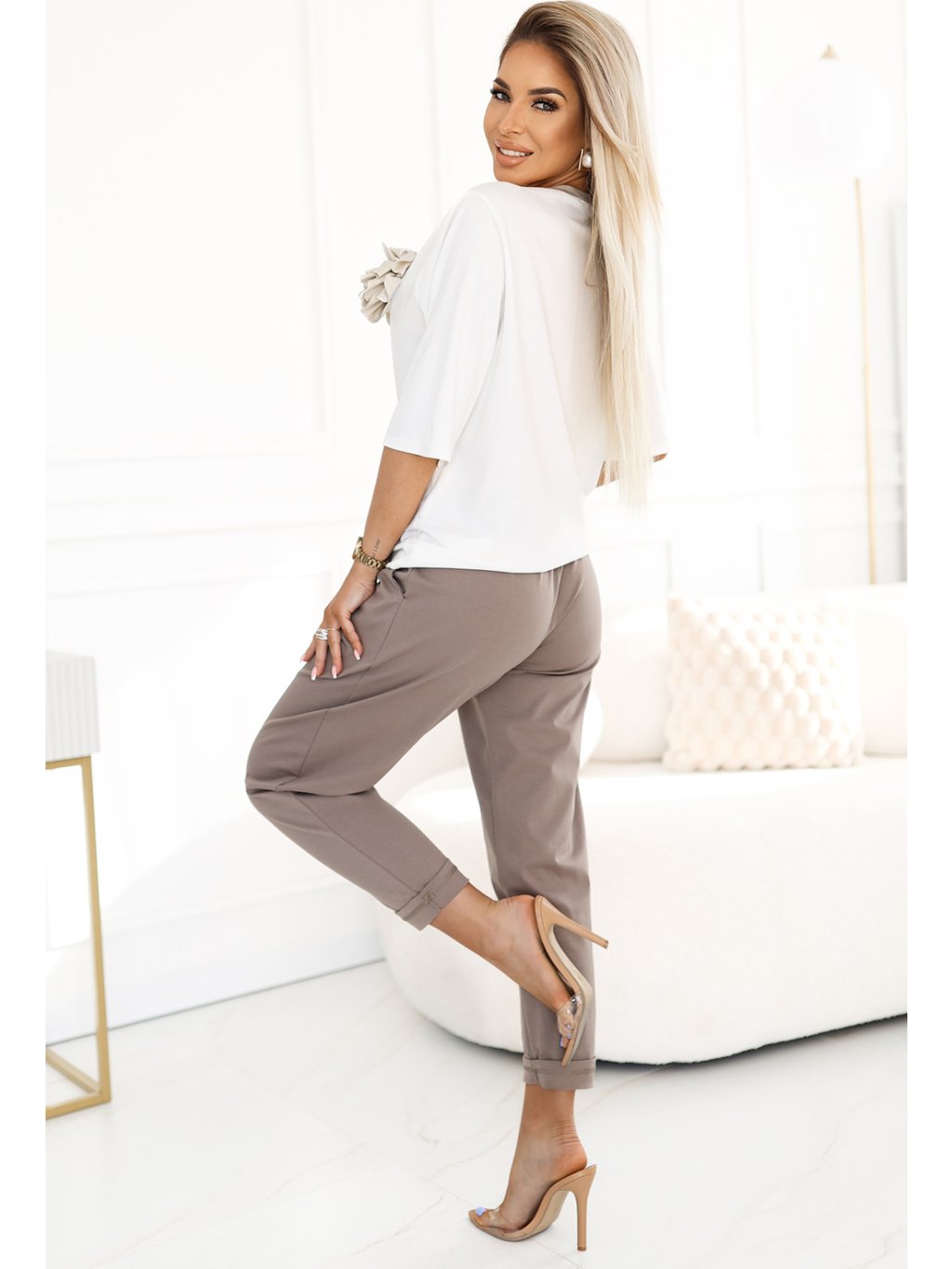 Smetanová pohodlná halenka s květinovou aplikací