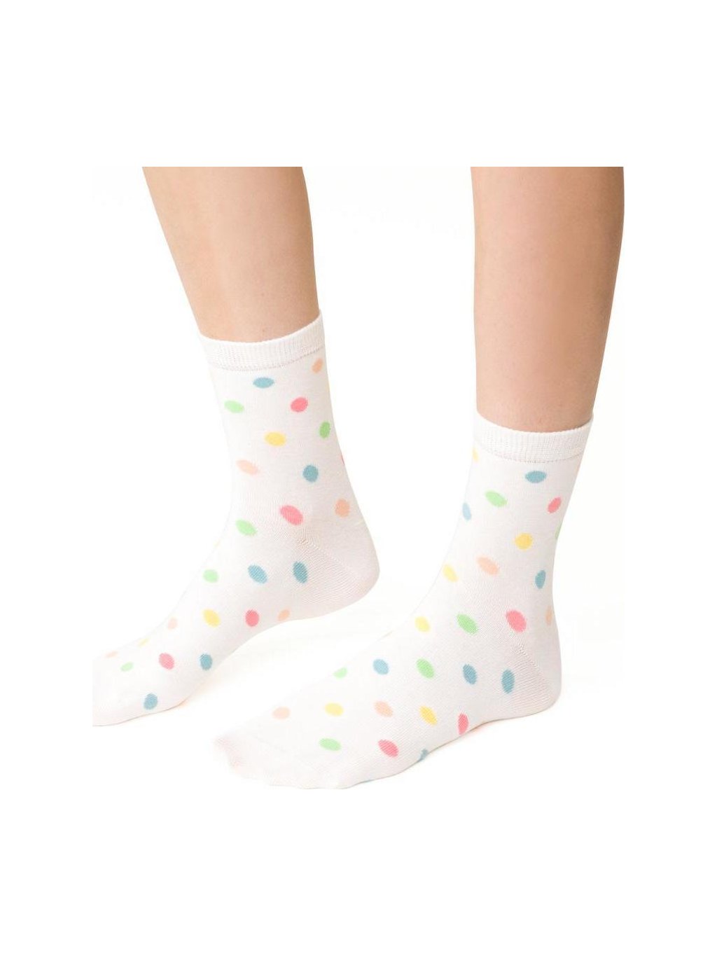 Smetanové dámské ponožky s barevnými puntíky Art.099