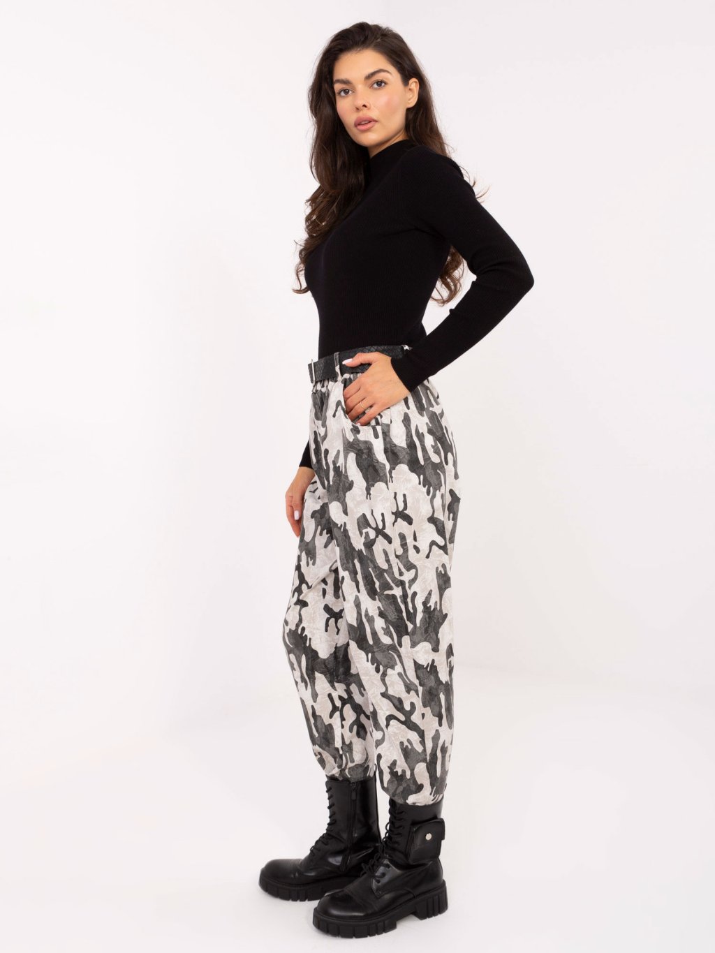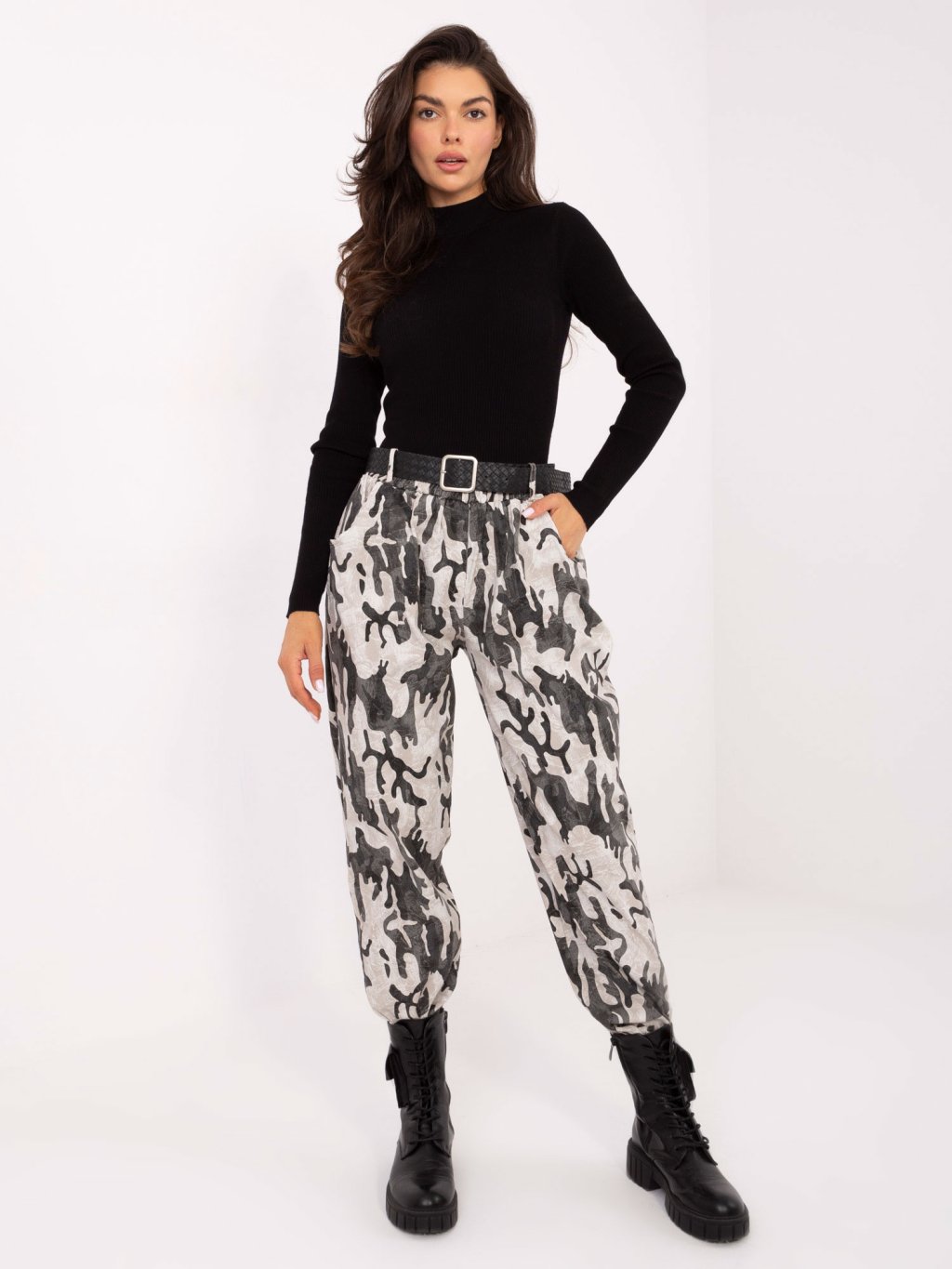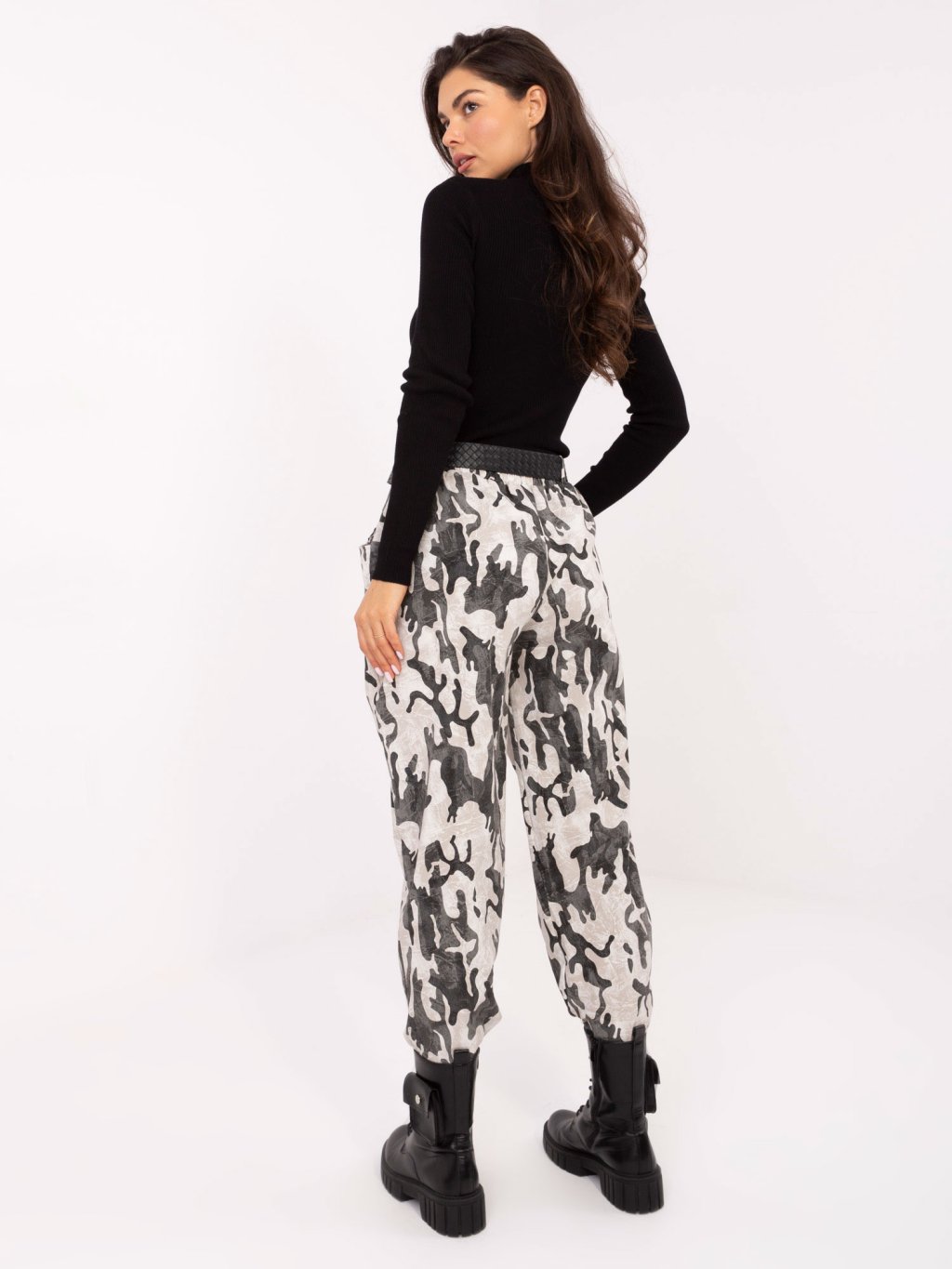 Smetanové dámské viskózové kalhoty s maskáčovým vzorem a páskem