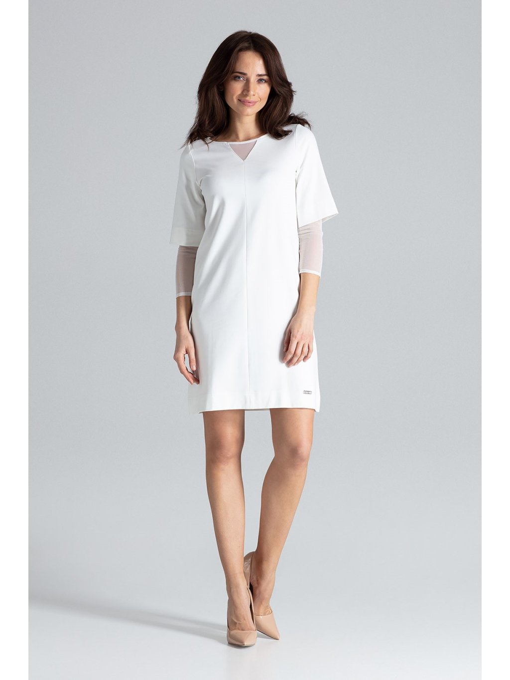 Smetanové šaty s rukávy ze síťoviny