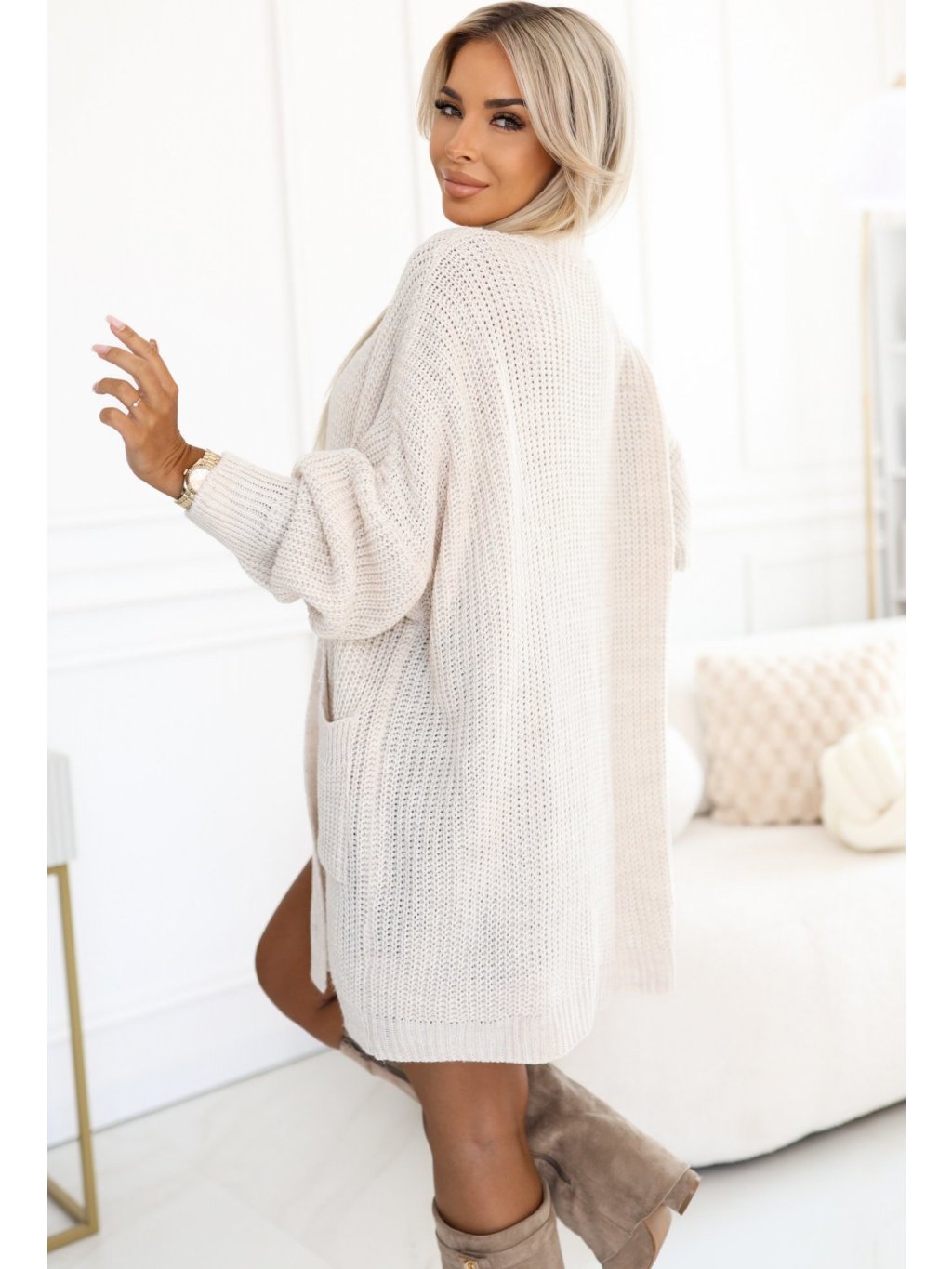Smetanový dámský kardigan s kapsami